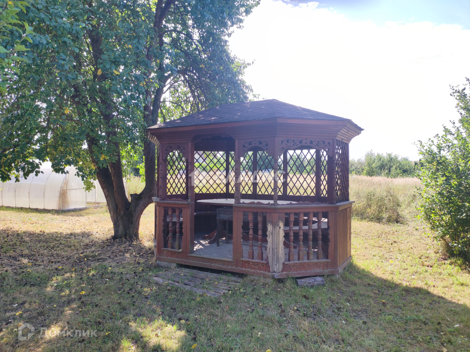 Установлена бытовка, сарай и беседка.