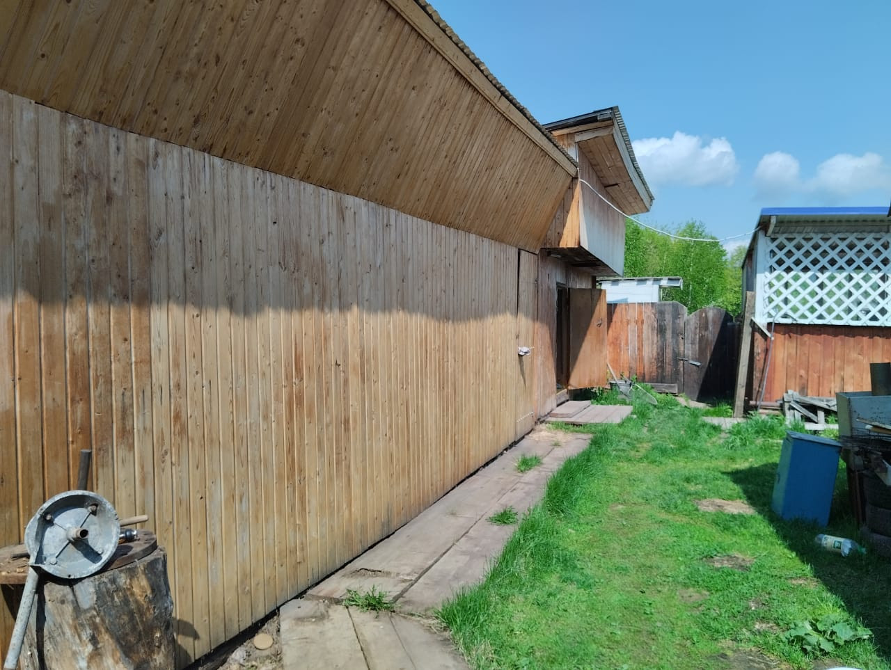 Есть баня, беседка, теплица, гараж. На участке с ухоженным огородом растут множество плодоносящих сортовых яблонь, вишни, крыжовника, красной и черной  смородины, крупноплодная виктория.