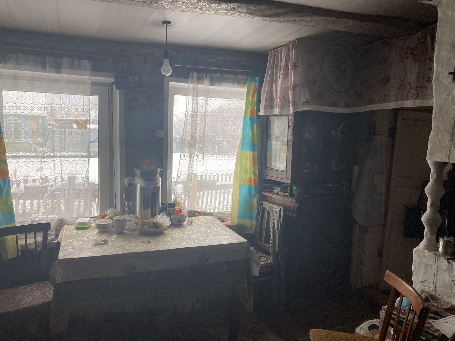 В доме печное отопление, газ подведен к дому, в сам дом не заведен. Баня новая ( поставленна в 2022 году). Большой земельный участок, посажены яблони, малина, смородина, вишня. Стоит новая теплица (2023год). В доме заменены окна на пластиковые стеклопакеты.