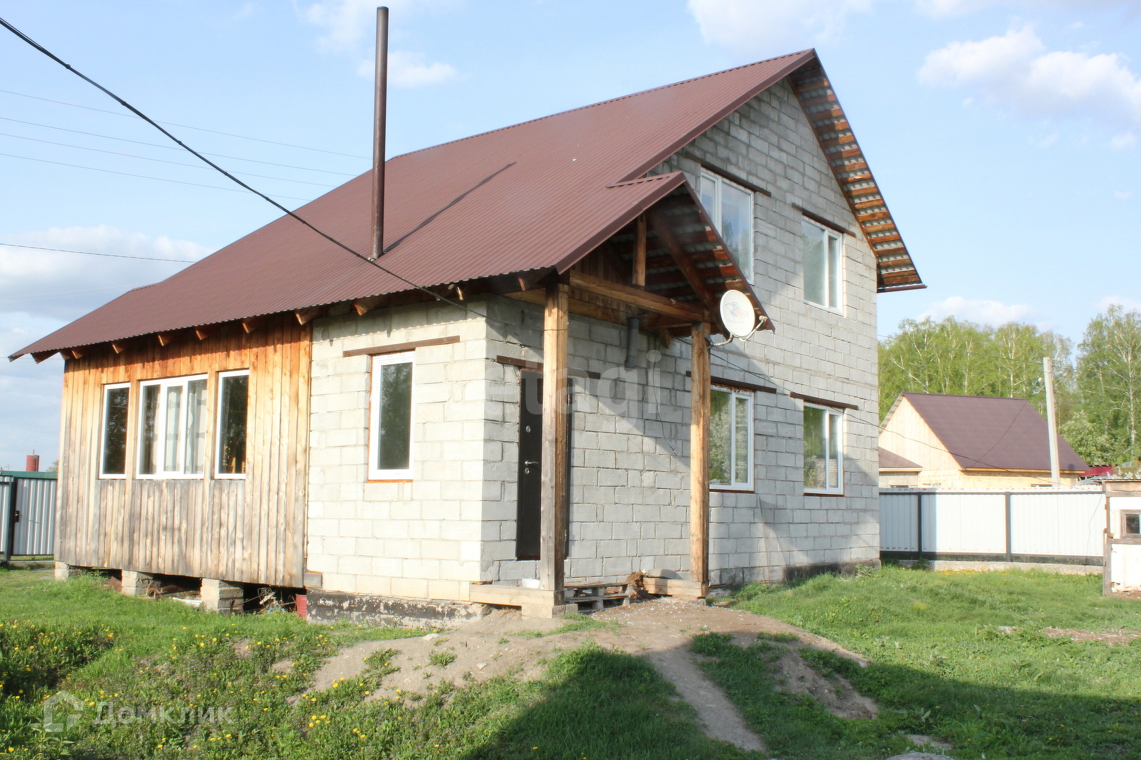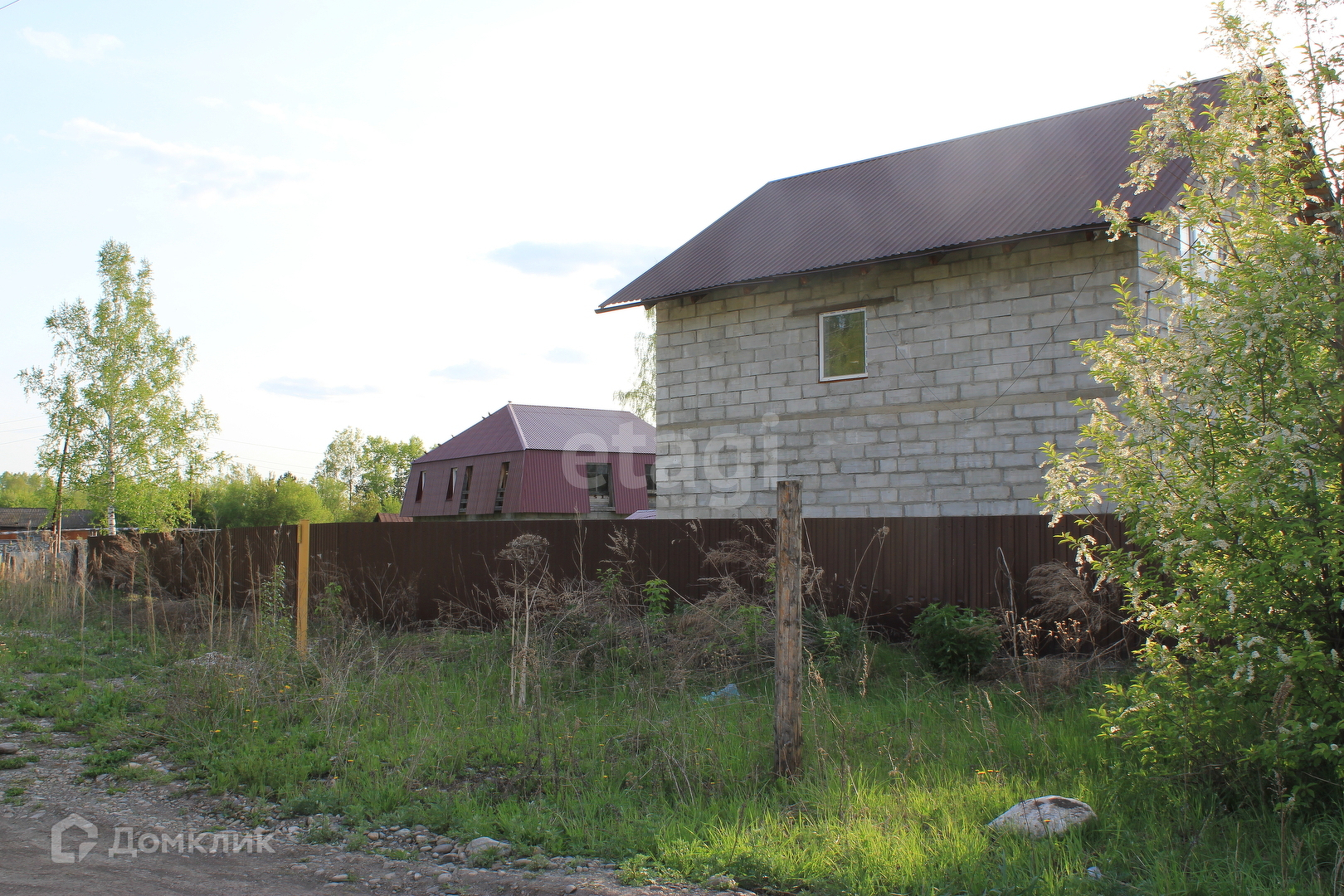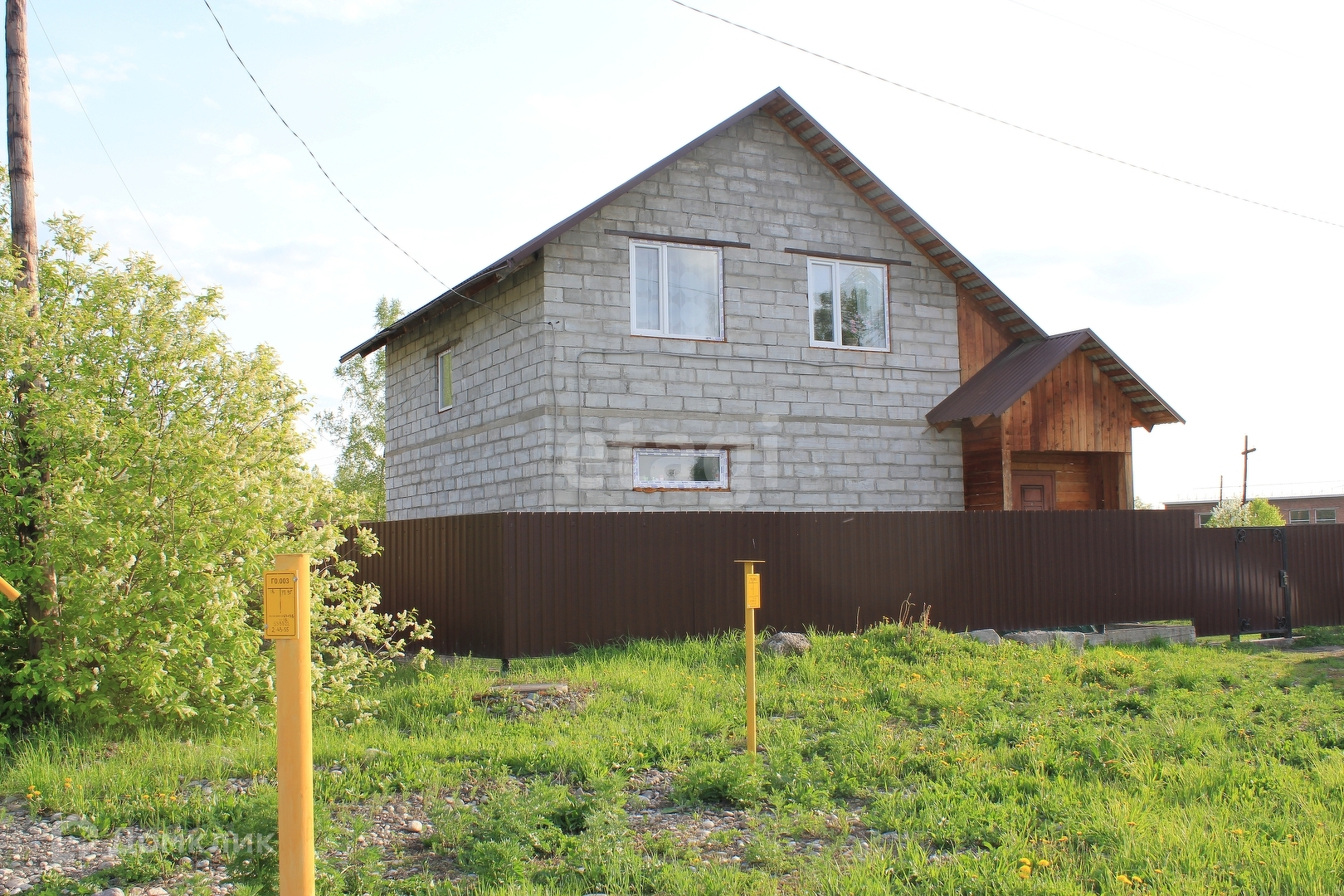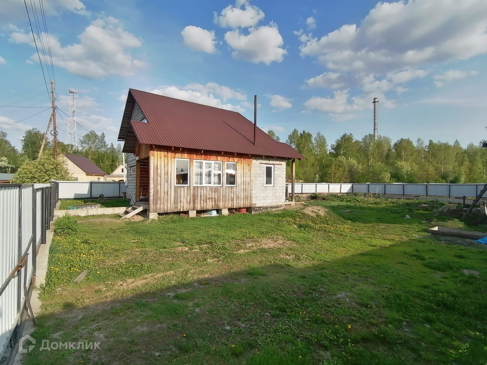 Забор на всю длину участка: фундамент, профлист под цвет кровли. Дом полностью благоустроен: свет, вода, канализация, интернет.