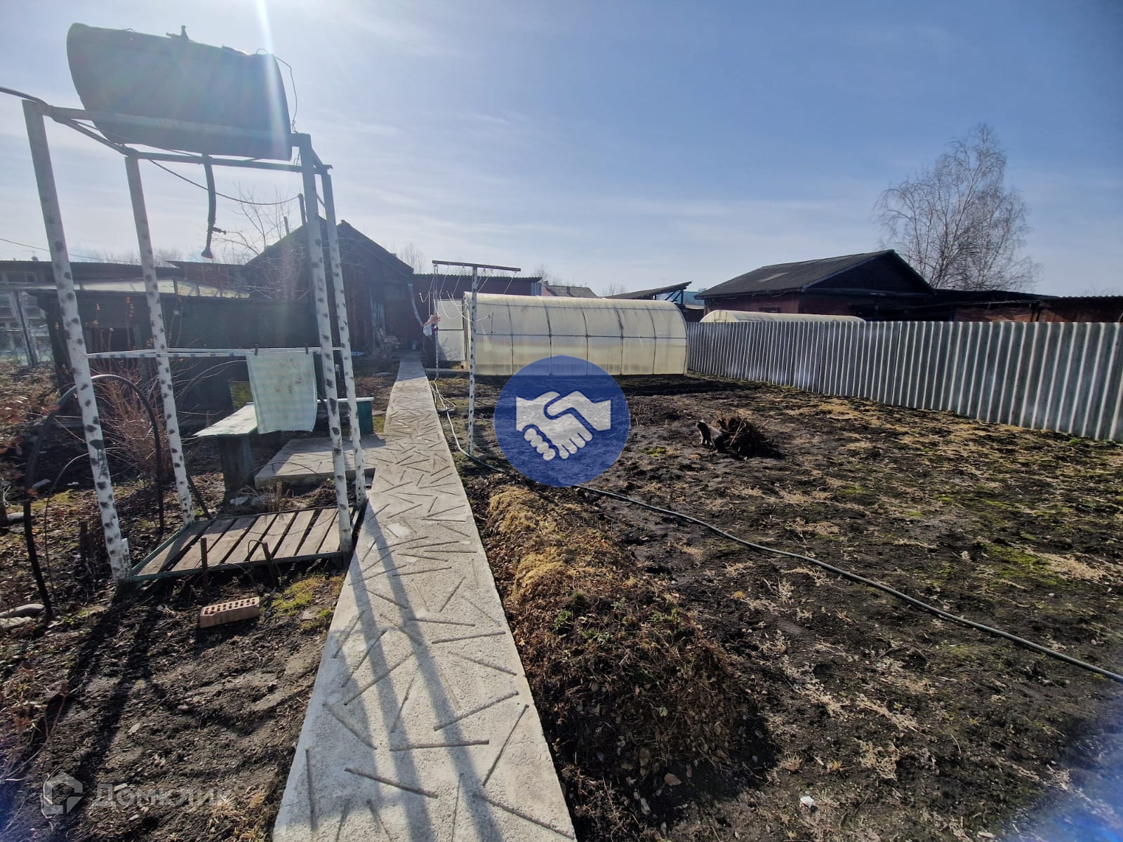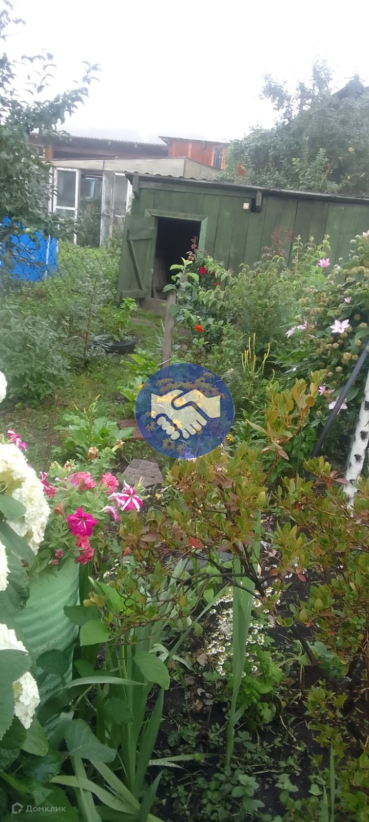 Участок 7-соток,очень ухоженный с богатым цветником, плодоносящими деревьями и множество ягод. Имеется теплица,большой бетонный погреб, баня,дровник и большой гараж.