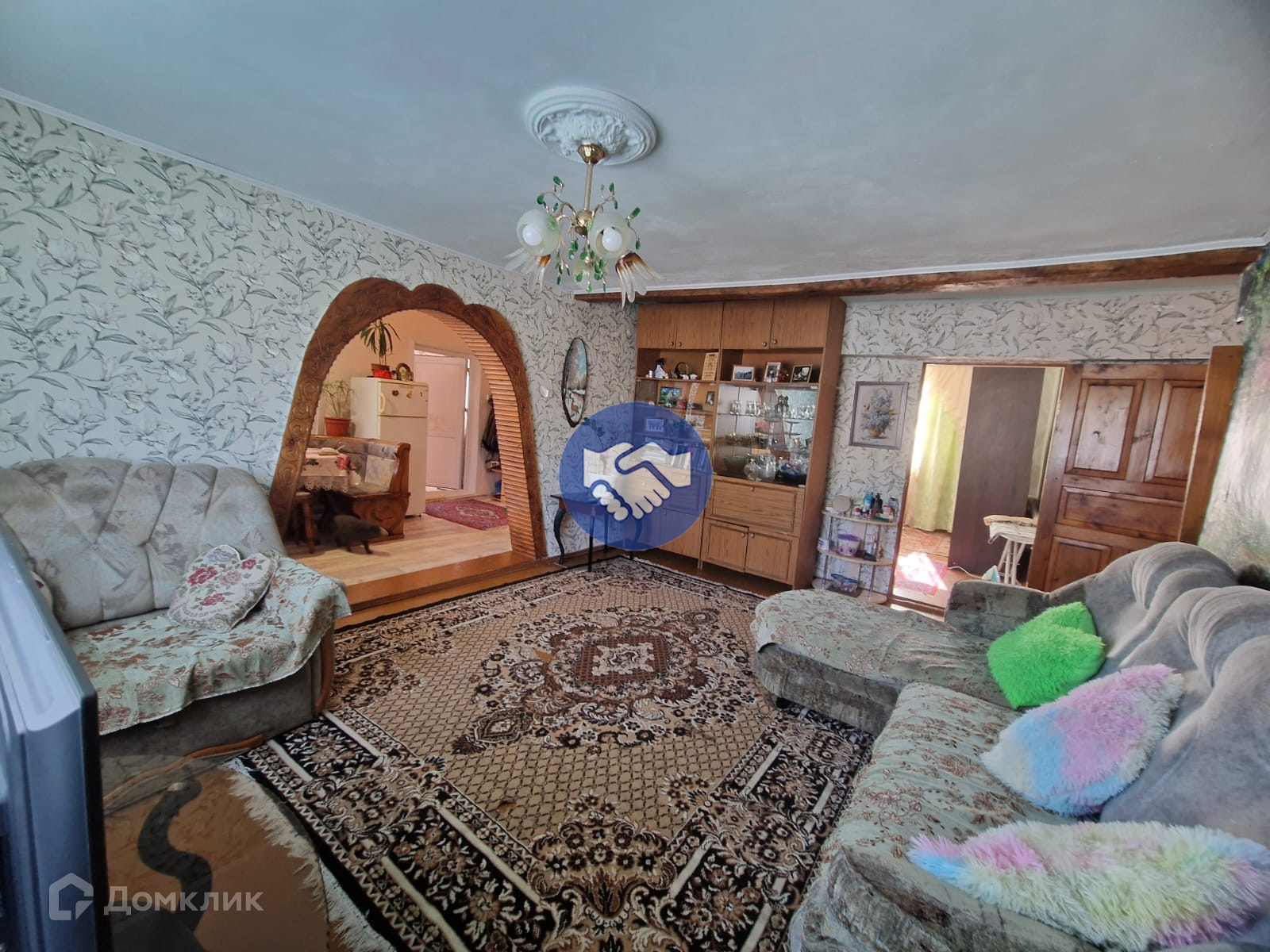 Дом 1/2. 80 кв.м очень теплый, бревенчатый,утеплён минватой и обшит сайдингом. В доме три спальни,зал,просторная кухня и совмещённый сан/узел. Имеется веранда и отдельная кочегарка с газовым оборудованием.