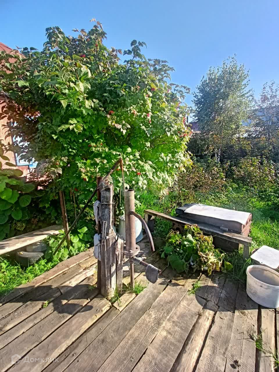 Большой огород, много плодоносящих деревьев.