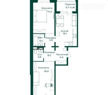 Площадь кухни 15.1 м2