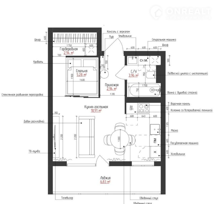 Балкон, лоджия 1 лоджия