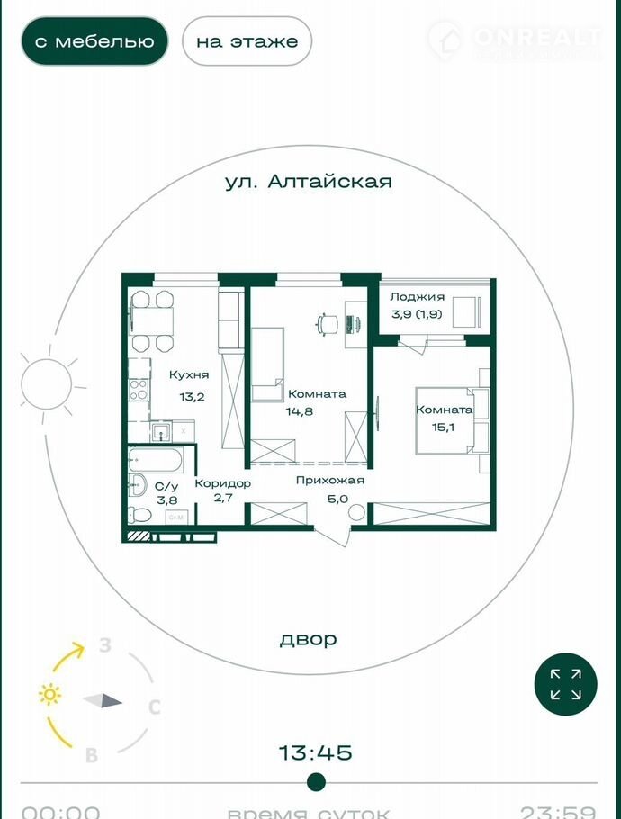 2-комнатная квартира, 56.5 м2, этаж 4 / 8, на продажу в селе Майма, Алтайская улица, 2к2