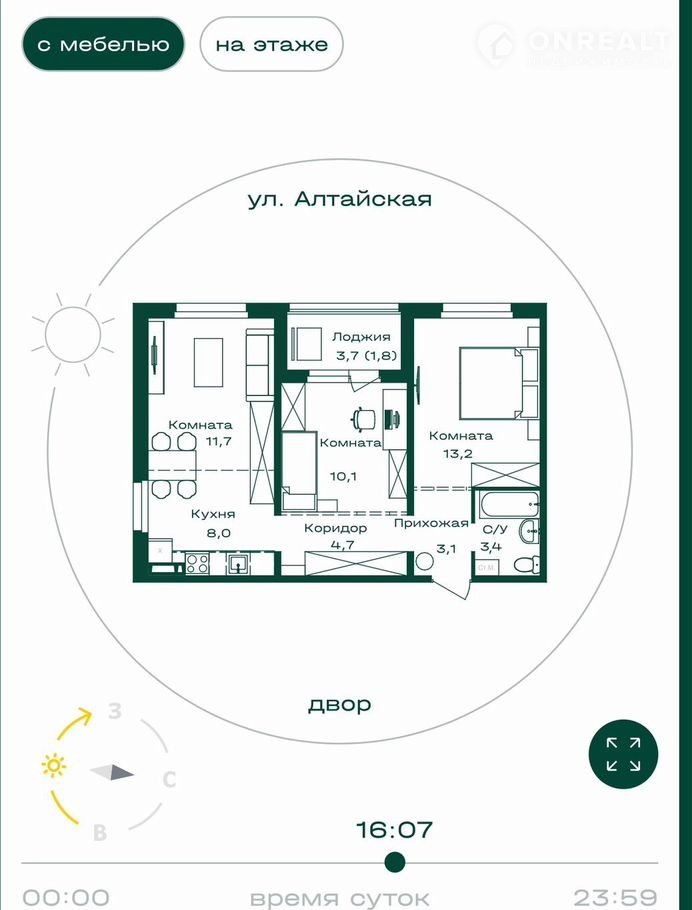 3-комнатная квартира, 56 м2, этаж 7 / 8, на продажу в селе Майма, Алтайская улица, 2к2