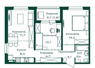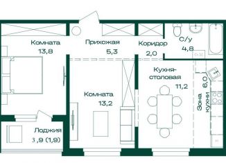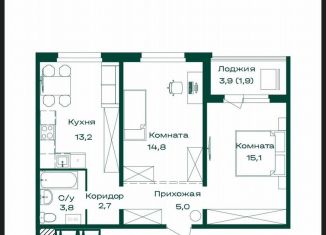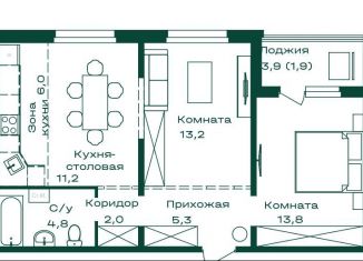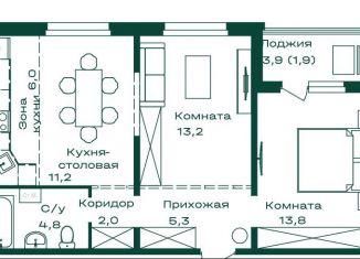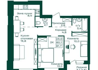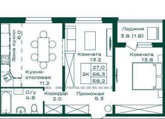 Двухкомнатная квартира на продажу, 58.2 м2