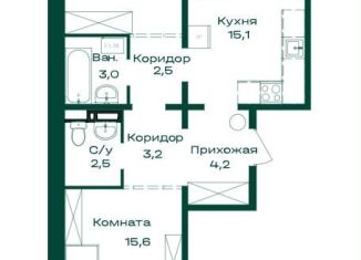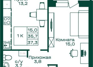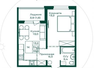 1-комнатная квартира на продажу, 37.3 м2