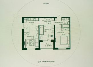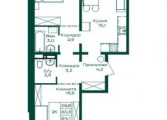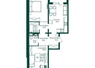 Двухкомнатная квартира на продажу, 64.1 м2