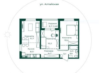 Продажа двухкомнатной квартиры, 58.2 м2, Алтайская улица, 2к2