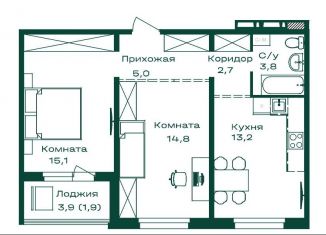 Продается 2-комнатная квартира, 57.1 м2