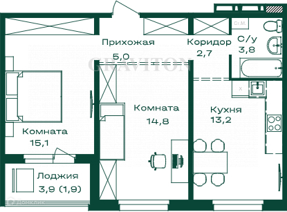 Балкон, лоджия 1 лоджия