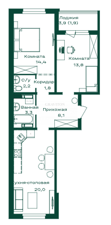 Количество комнат 2