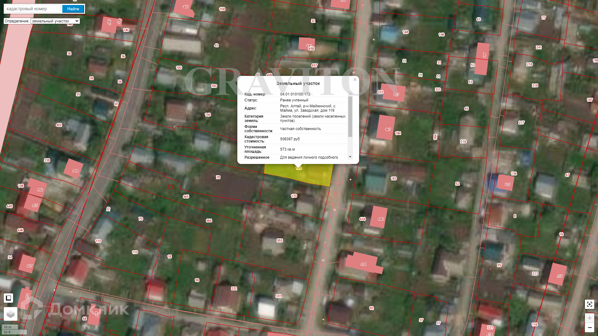 Арт. 58911519 Земельный участок правильной формы, газ у забора, центральный водопровод, свет, асфальтированный подъезд. На участке есть дощатый гараж с сараем на фундаменте. Кадастровый номер: 04:01:010105:172. Категория земель: Земли поселений (земли населенных пунктов). Разрешенное использование: Для ведения личного подсобного хозяйства.