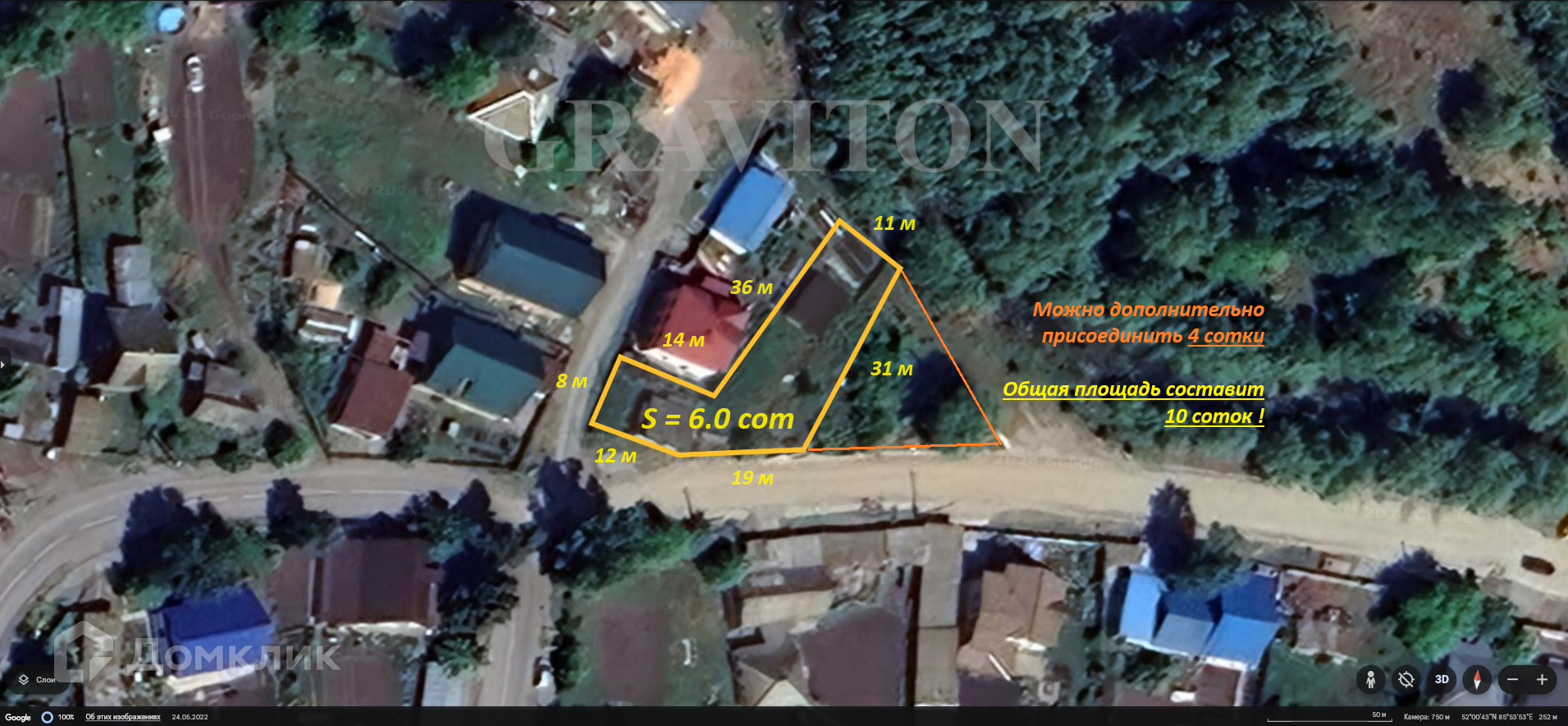 Площадь участка — 6,0 соток. Возможно расширение площади участка примерно на 4 сотки — до 10 соток! Категория — для ведения личного подсобного хозяйства. Участок в собственности. На участке расположены ветхий дом (2000 года постройки, можно отремонтировать) и новая баня из бруса.