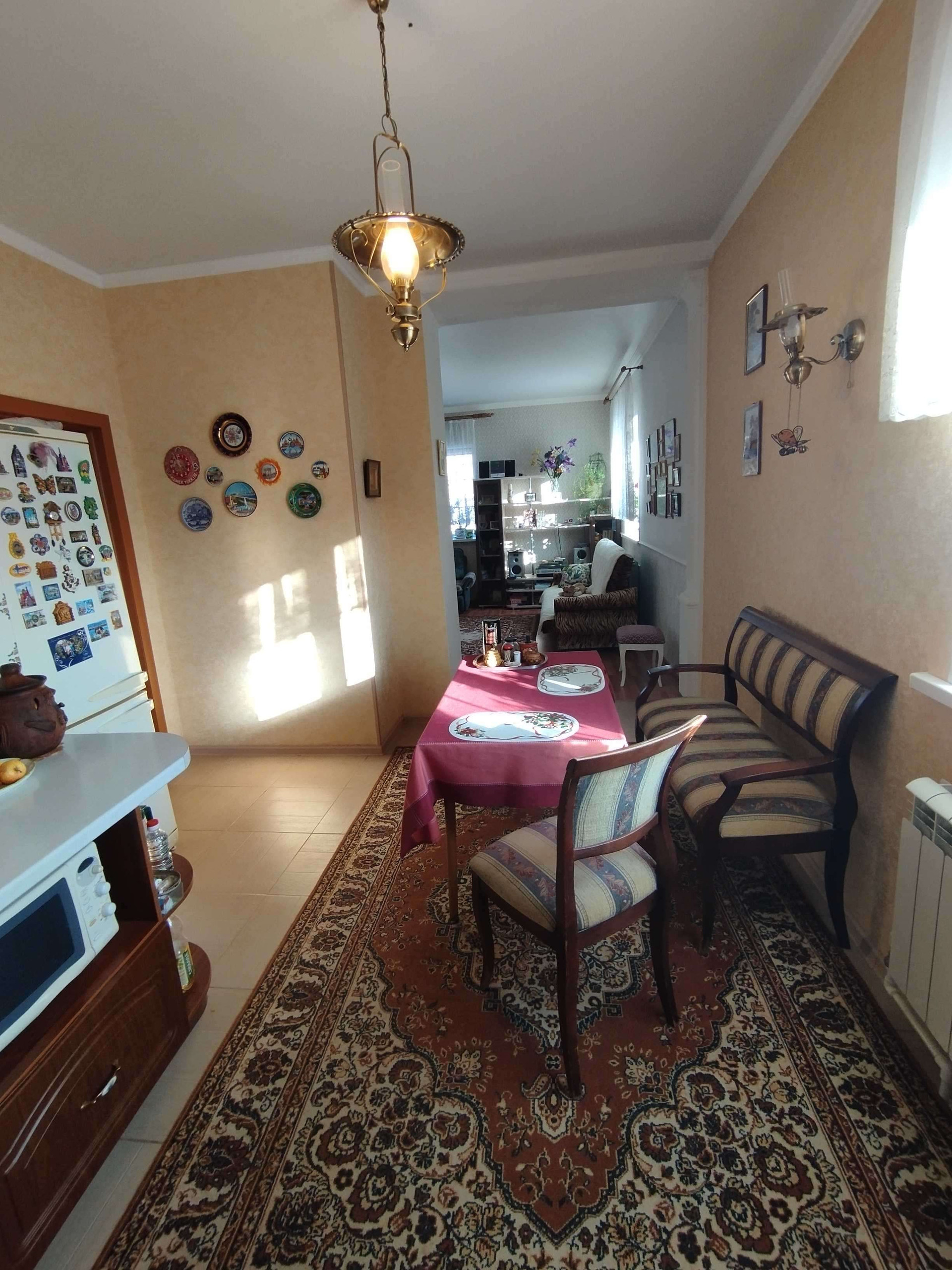 Продам уютный, добротный дом с ремонтом в с. Майорское, 28 км. от города, 1 этажный+ цокольный этаж, общая площадь 137,2 кв.м., на первом этаже :просторная кухня- оставим гарнитур со встроенной техникой, светлая спальня с гардеробной, совмещённый сан. узел, большой холл, на цокольном этаже: уютная комната для отдыха, гостевая спальня, сауна на дровах, сан. узел и душевая кабина, кладовая. Пристроенный гараж со смотровой ямой, большая летняя кухня. Земельный участок, огорожен забором, 12 соток с разнообразными насаждениями: малина, шелковица, смородина, яблоня, абрикос, груша, виноград несколько сортов, многолетние цветы, 2 теплицы из поликарбоната и многое другое.