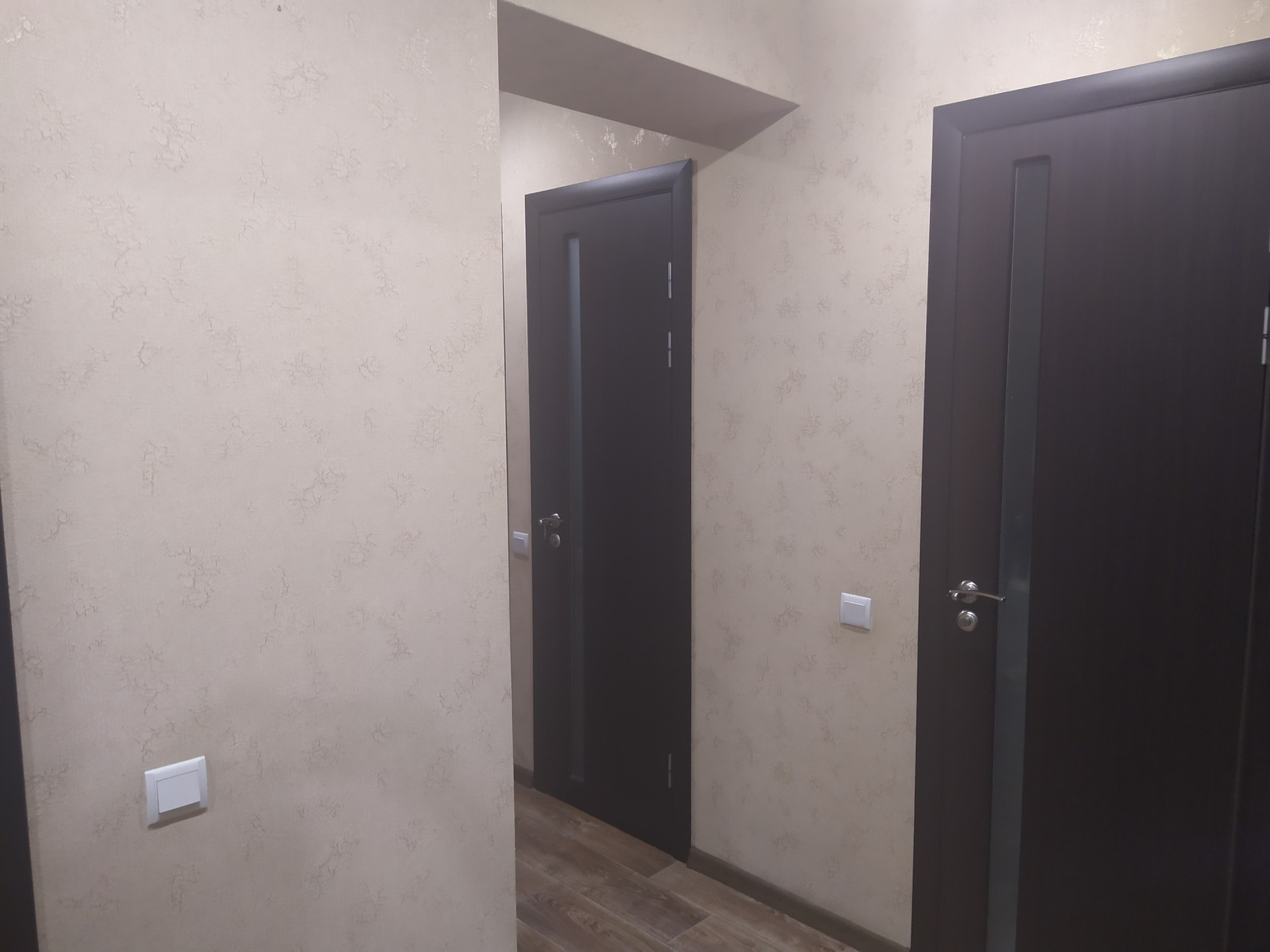 индивидуальное отопление, пластиковые окна, натяжные потолки, на полу - линолеум.