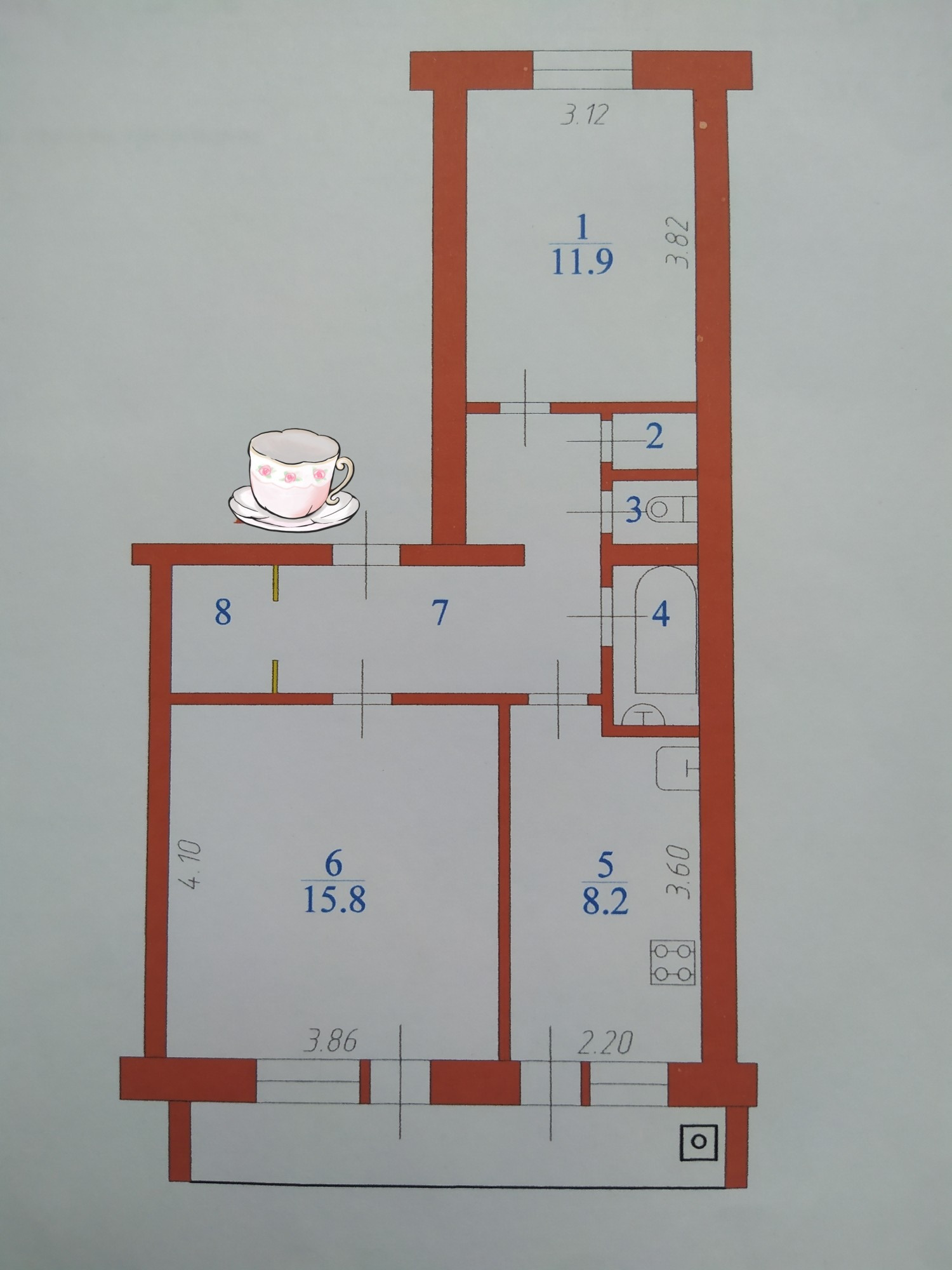Площадь кухни 8.2 м2