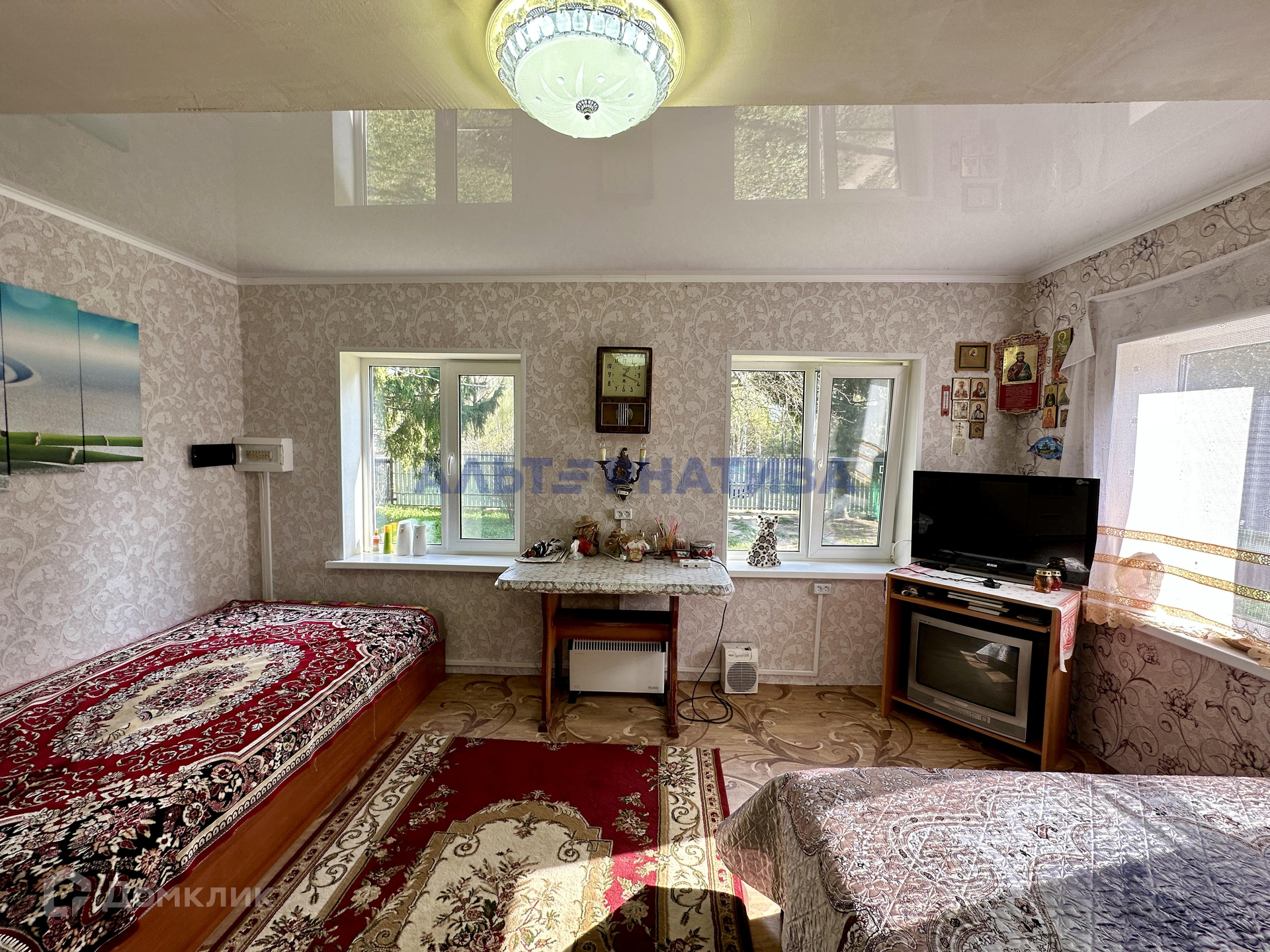 Дом в хорошем состоянии. Бревно крепкое, фундамент - ленточный. На участке есть пруд, в котором водится рыба. Перед домом есть территория для парковки авто. Соседи хорошие.