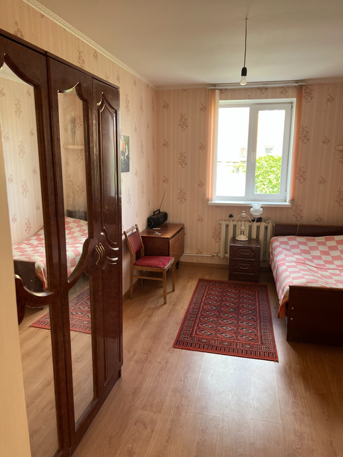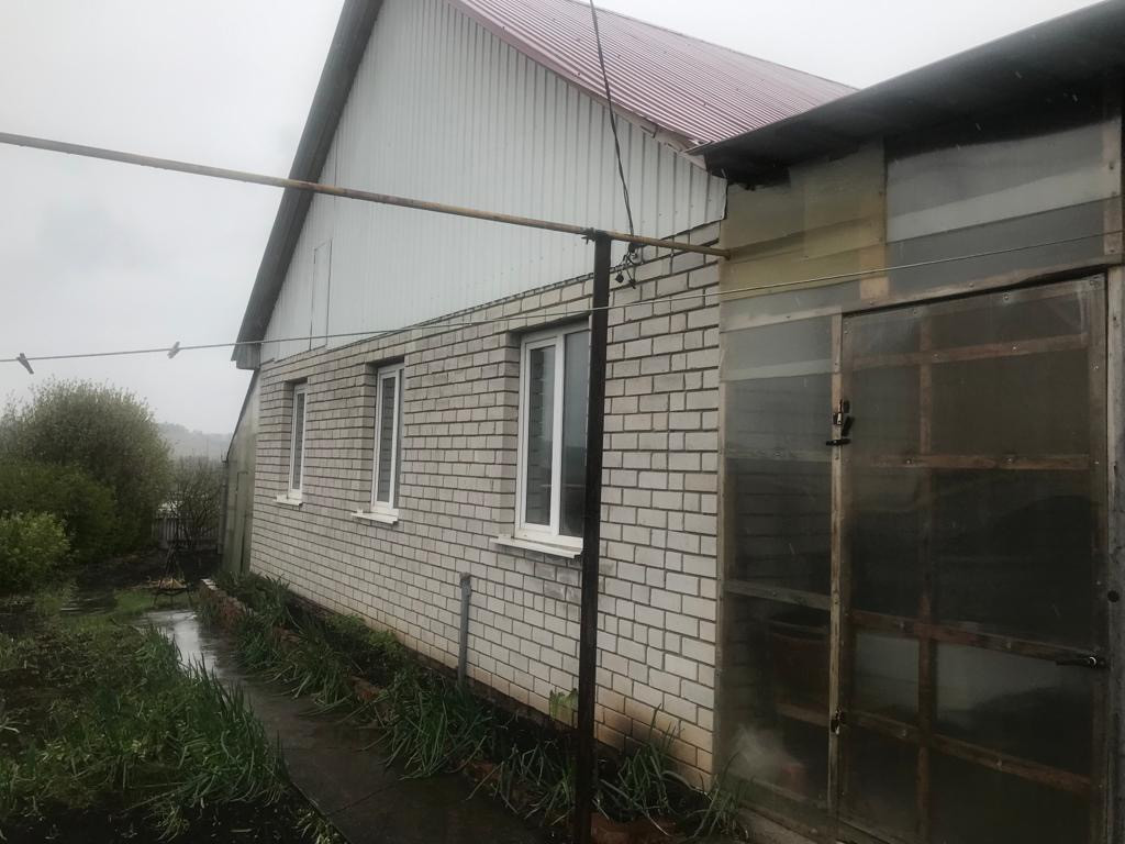 Продаётся кирпичный одноэтажный дом. Три комнаты и кухня. В доме туалет и небольшая баня. Газ, вода, электричество, канализация- все есть. Большой и ровный участок.