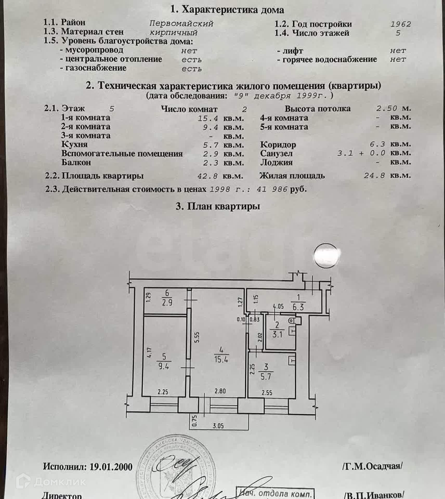 Общая площадь 42.8 м2