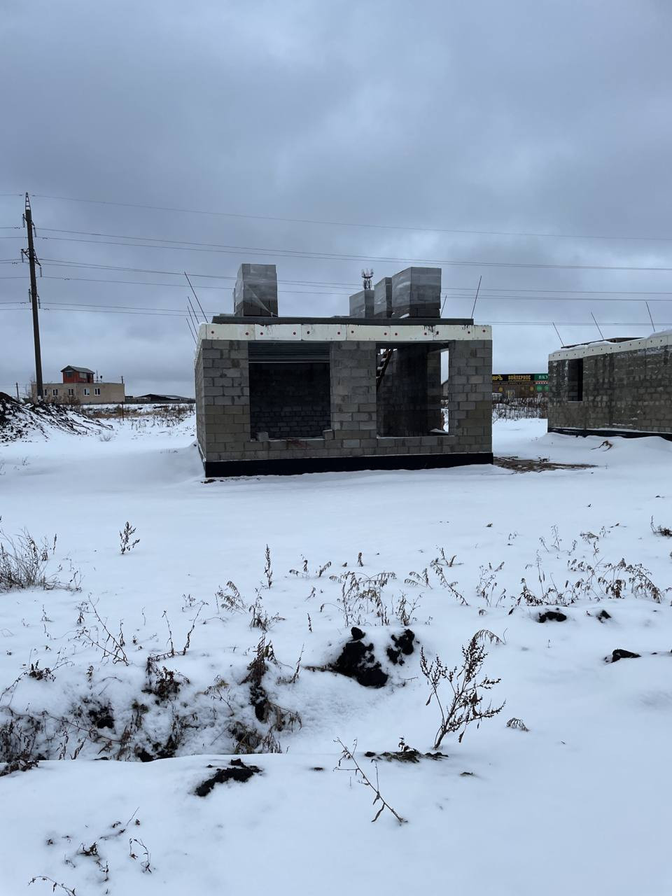 Залит фундамент, возведены стены первого этажа.