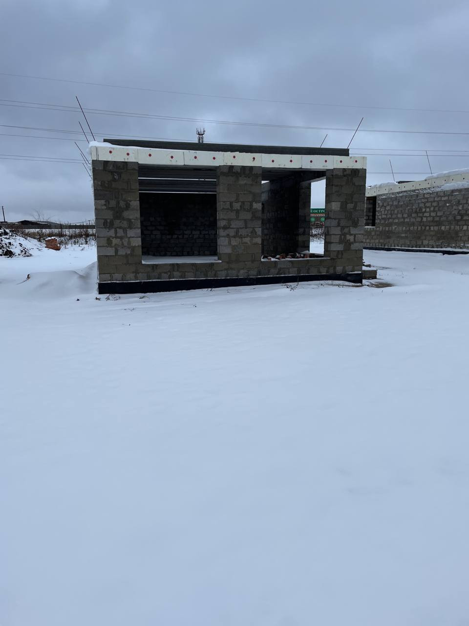 Залит фундамент, возведены стены первого этажа.