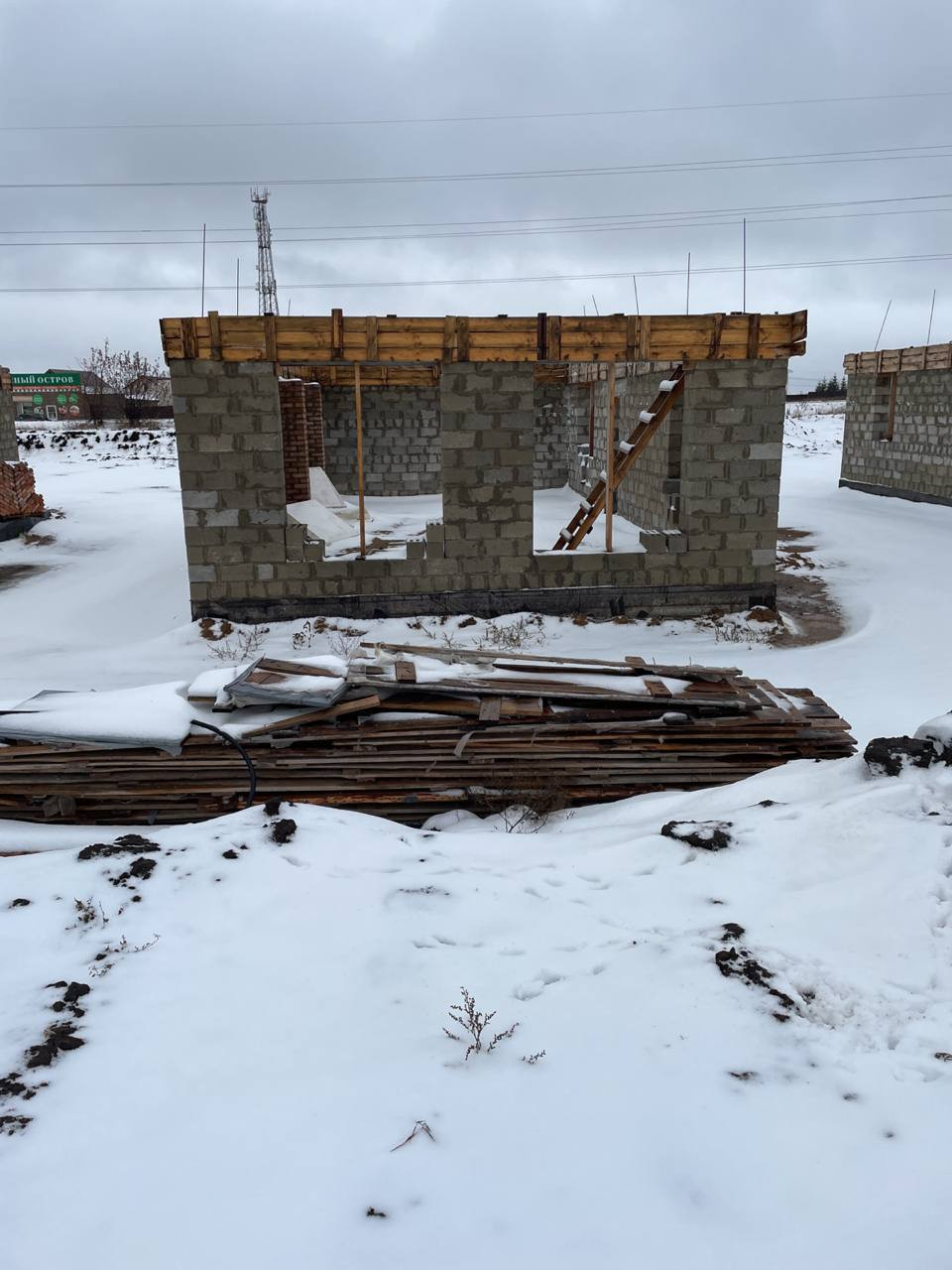 Залит фундамент, возводятся стены первого этажа.