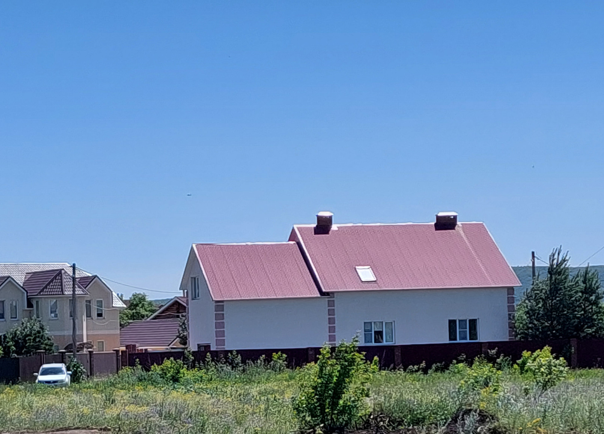 По периметру участок огорожен полностью забором из проф-листа, ворота с электроприводом.