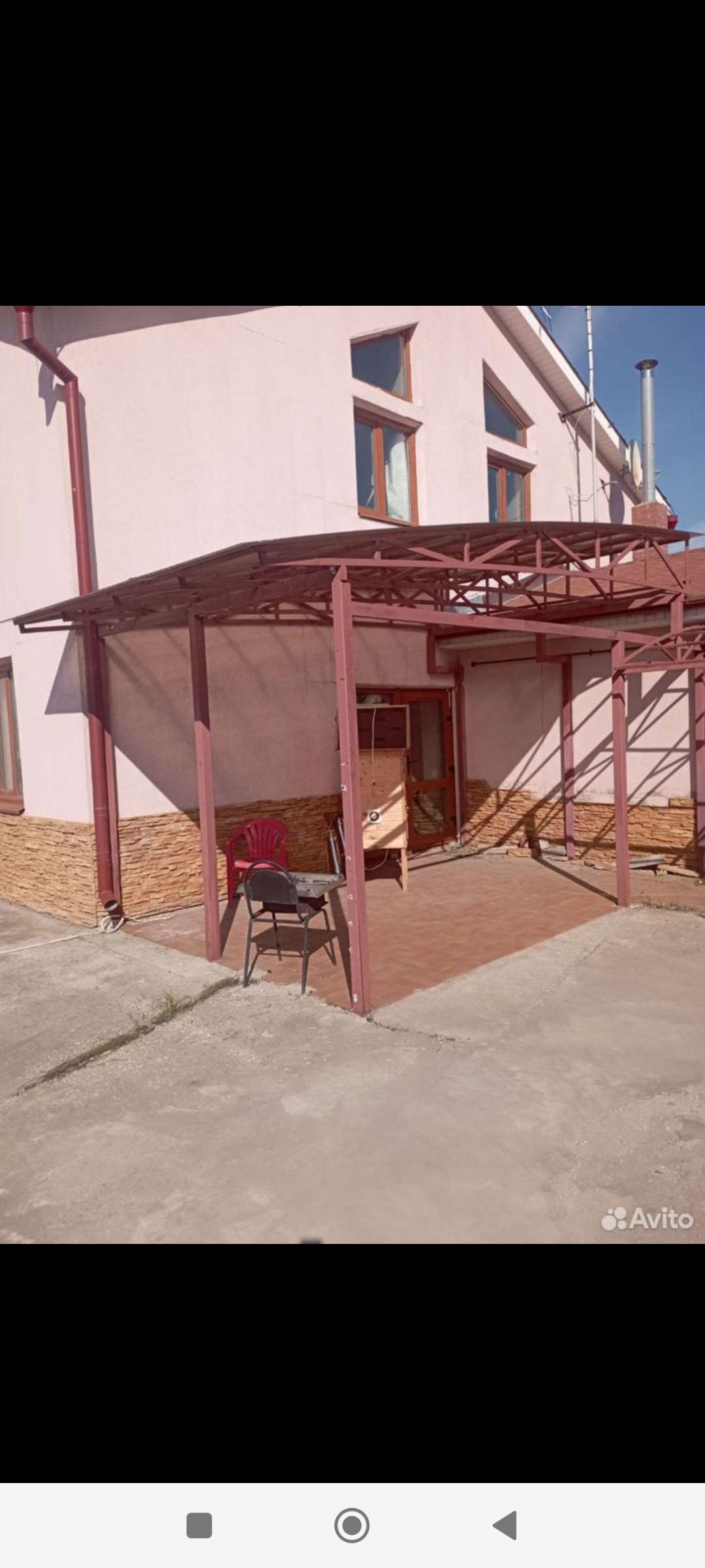 Гараж на 2 автомобиля со смотровой ямой (в настоящий момент используется как жилое помещение), имеет выход в дом. Кроме того  имеется крытая площадка для парковки 3-х автомобилей.
