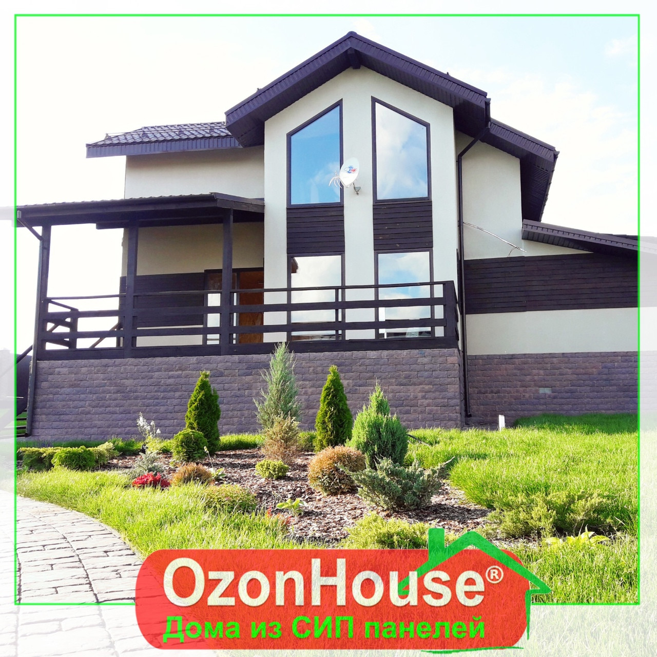 Крыша – предусмотрена стропильная система с утеплением - Перегородки - Каркасные Заводской раскрой СИП панелей на современном оборудовании согласно проекта. Конструктив дома выполнен из Отборного строганного пиломатериала камерной сушки (12-16% влажности) с обработкой огнебиозащитным составом. Балки и опорные столбы с бруса камерной сушки (12-16% влажности) . Вентилируемая крыша с контр.брусом и обрешеткой, с покрытием металлочерепицей "Монтеррей с толщиной металла 0,5 мм по ГОСТ.