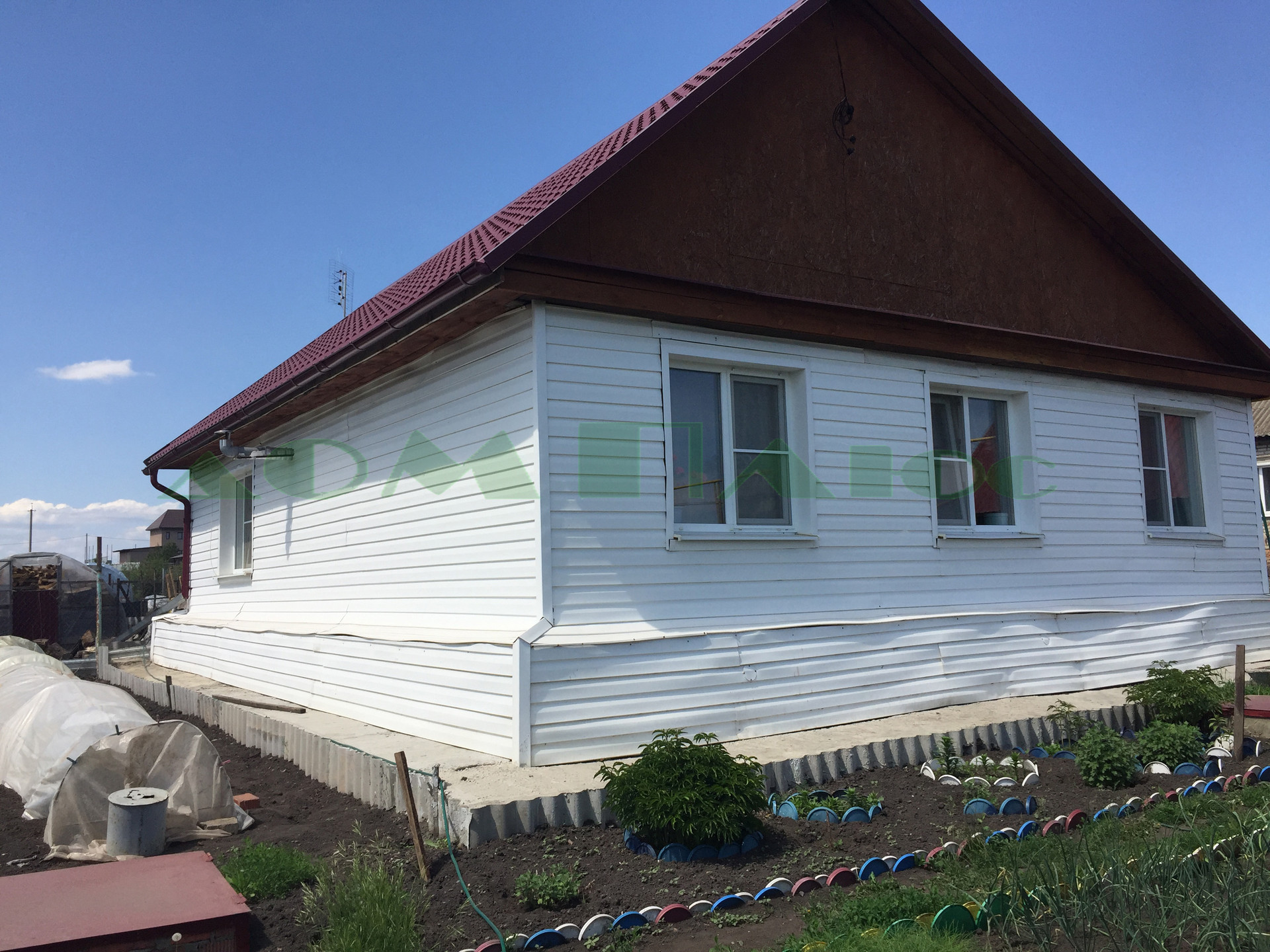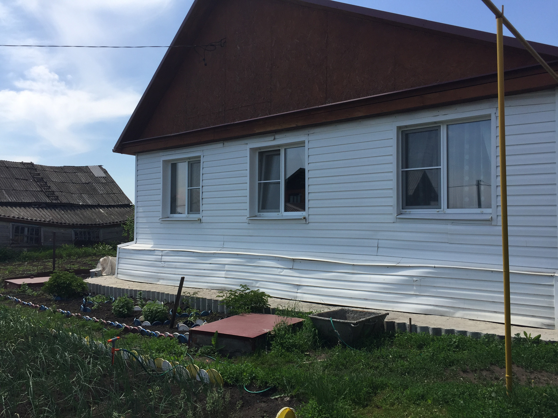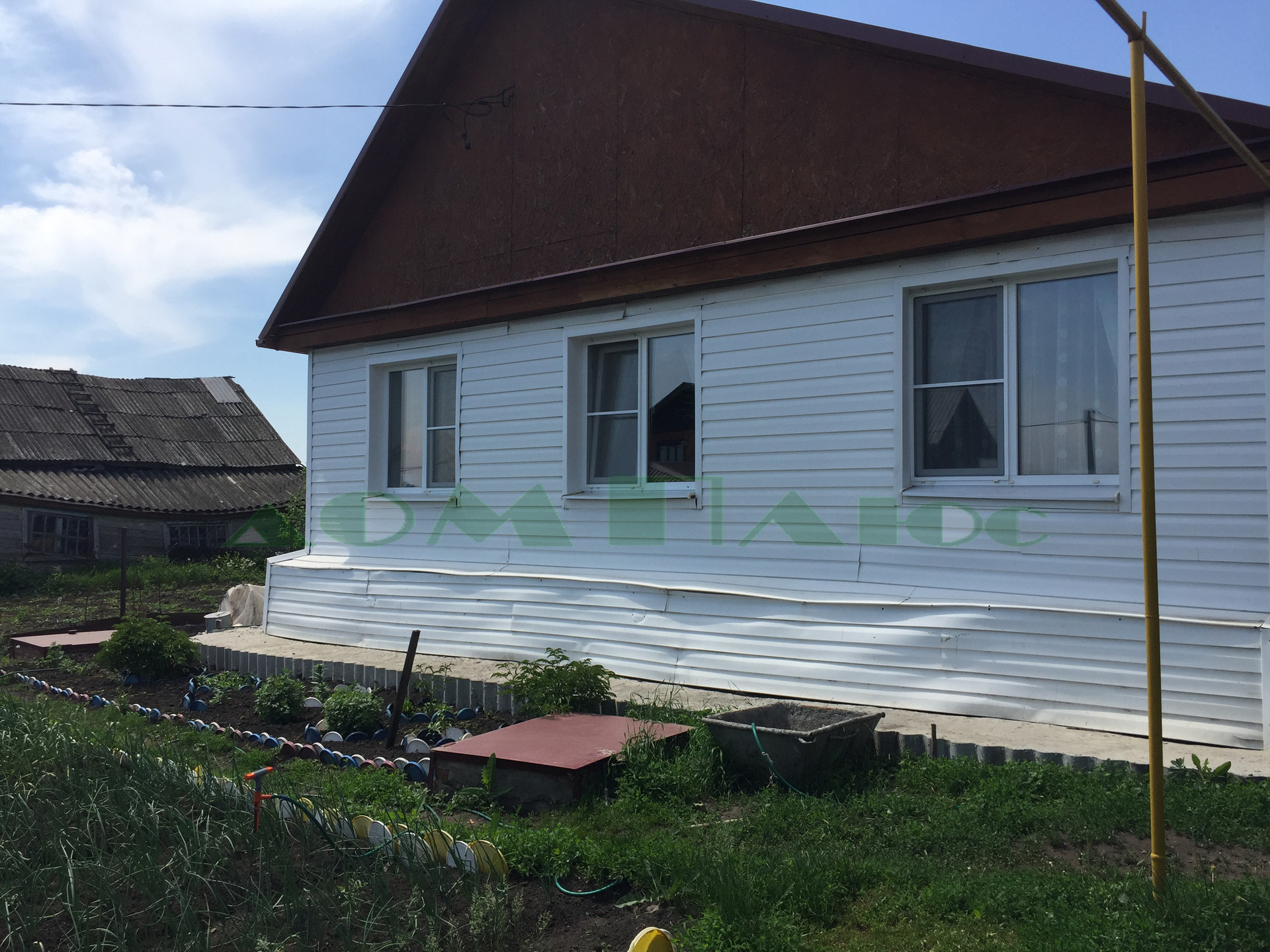 Продается 1-этажный дом в Малой Валяевке, дом из бруса, отделанный снаружи сайдингом.