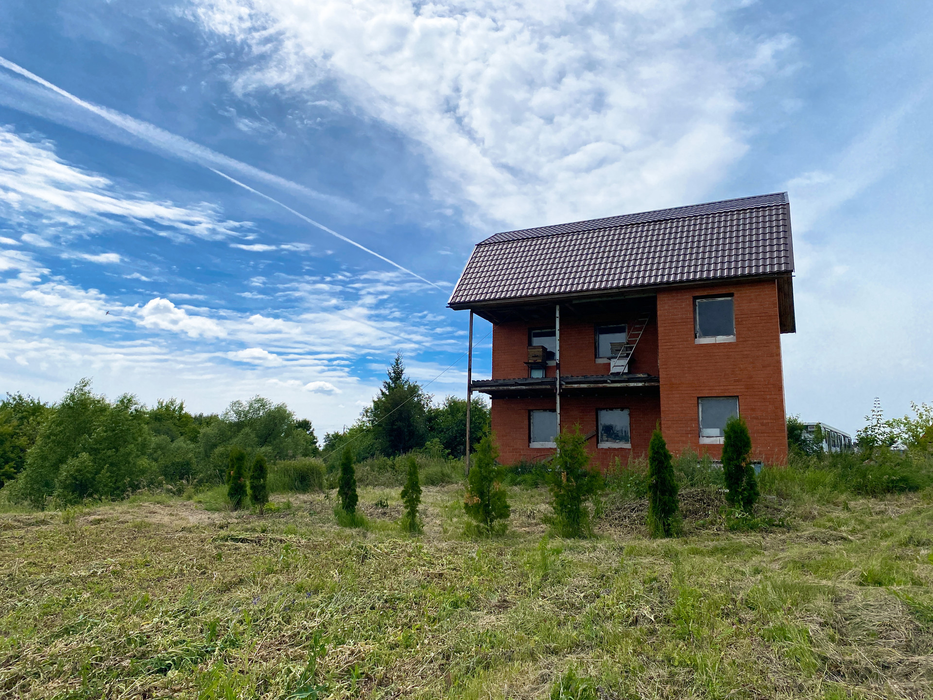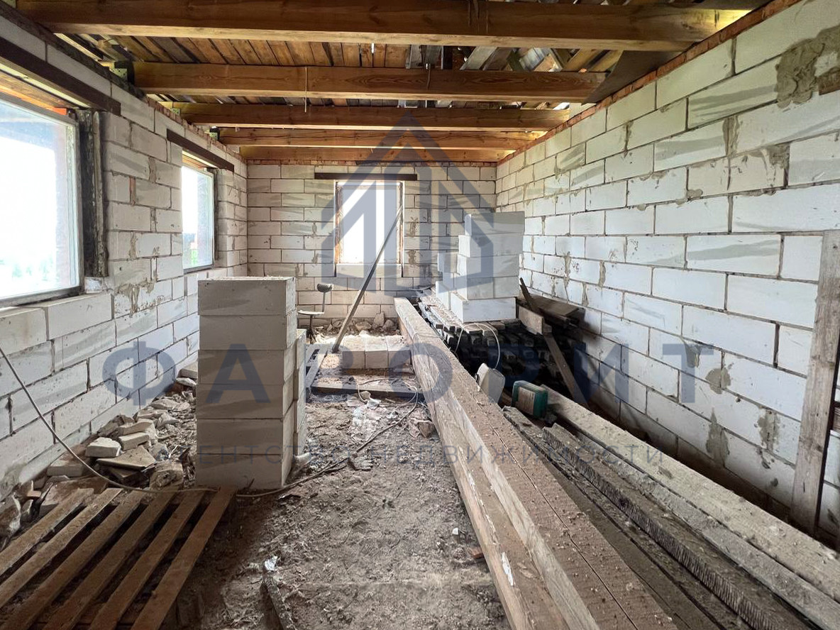 Также на участке стоит недостроенный домик, площадью 100кв.м. Его можно использовать как основной дом. Также планировка домика отлично подойдет под баню с комнатой отдыха, либо под мастерскую.