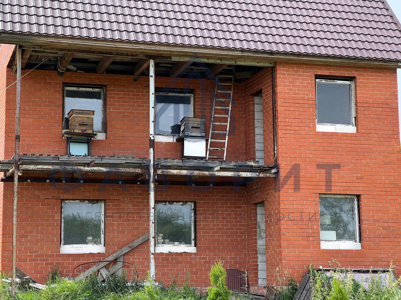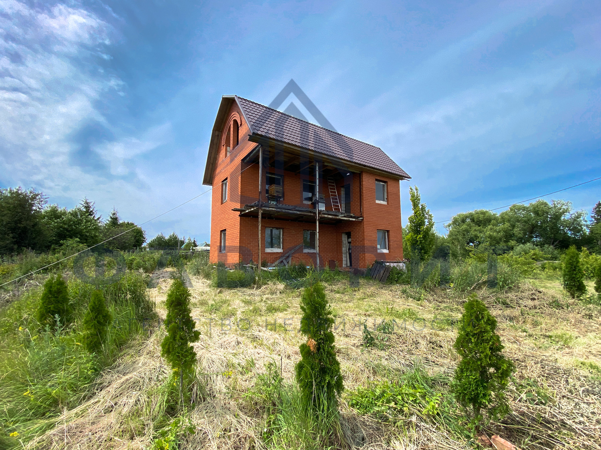 Материал постройки дома - газобетон и кирпич. Фундамент - ленточный.