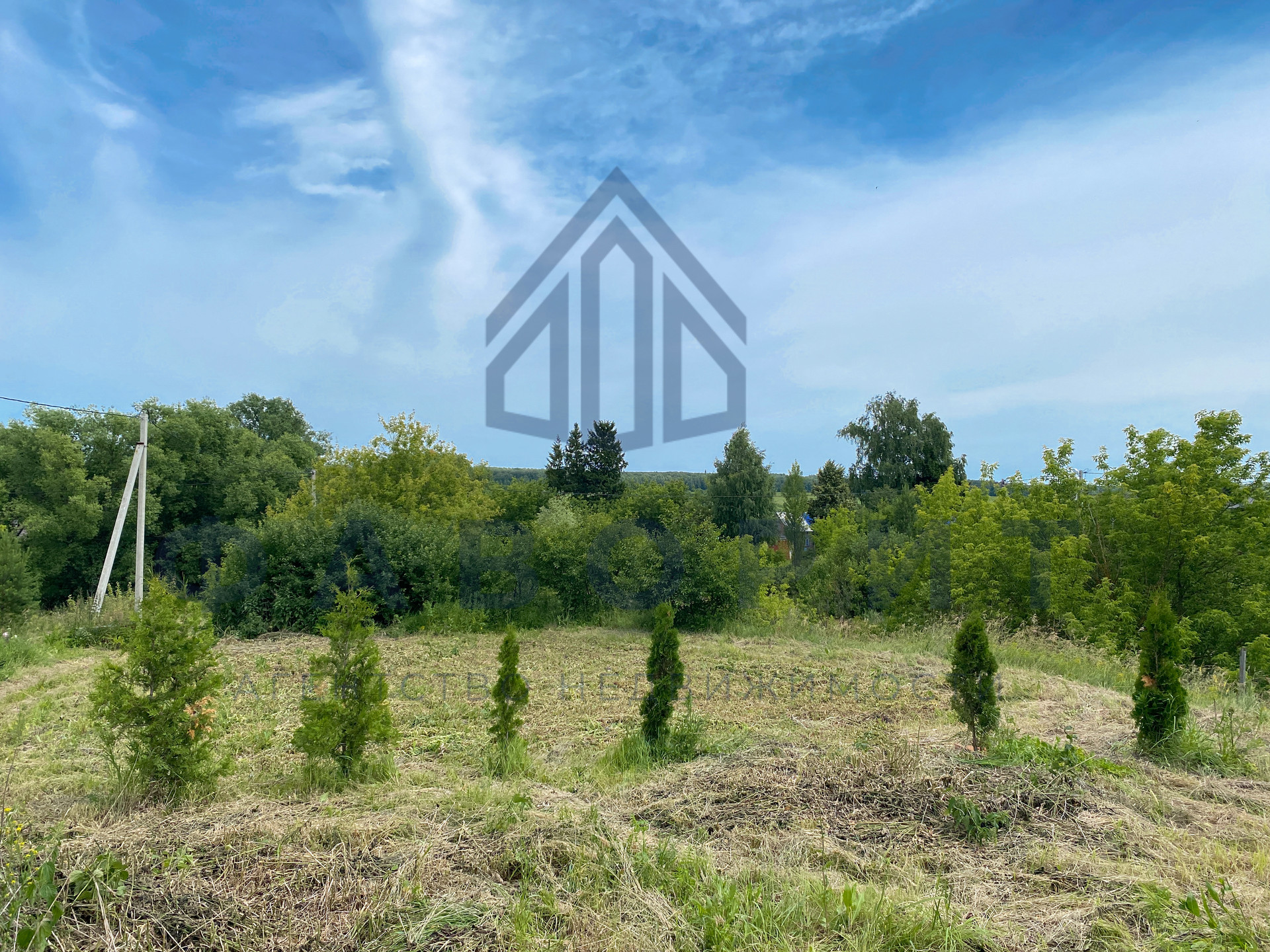 Участок ровный, правильной формы. На участке высажены плодовые деревья, много туй.