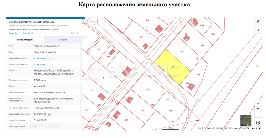 К продаже представлен земельный участок в Тобольском районе, с. М. Зоркальцева, в 30 км от города.