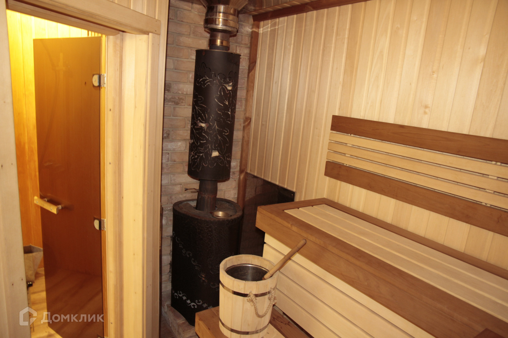 Первый этаж: кухня-гостинная, совмещённый санузел, закрытая терраса и дровяная сауна!