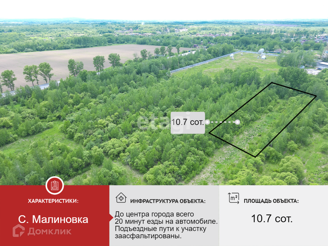 Участок под ИЖС, 10.7 сот. на продажу в селе Малиновка, Центральная улица, 20Г