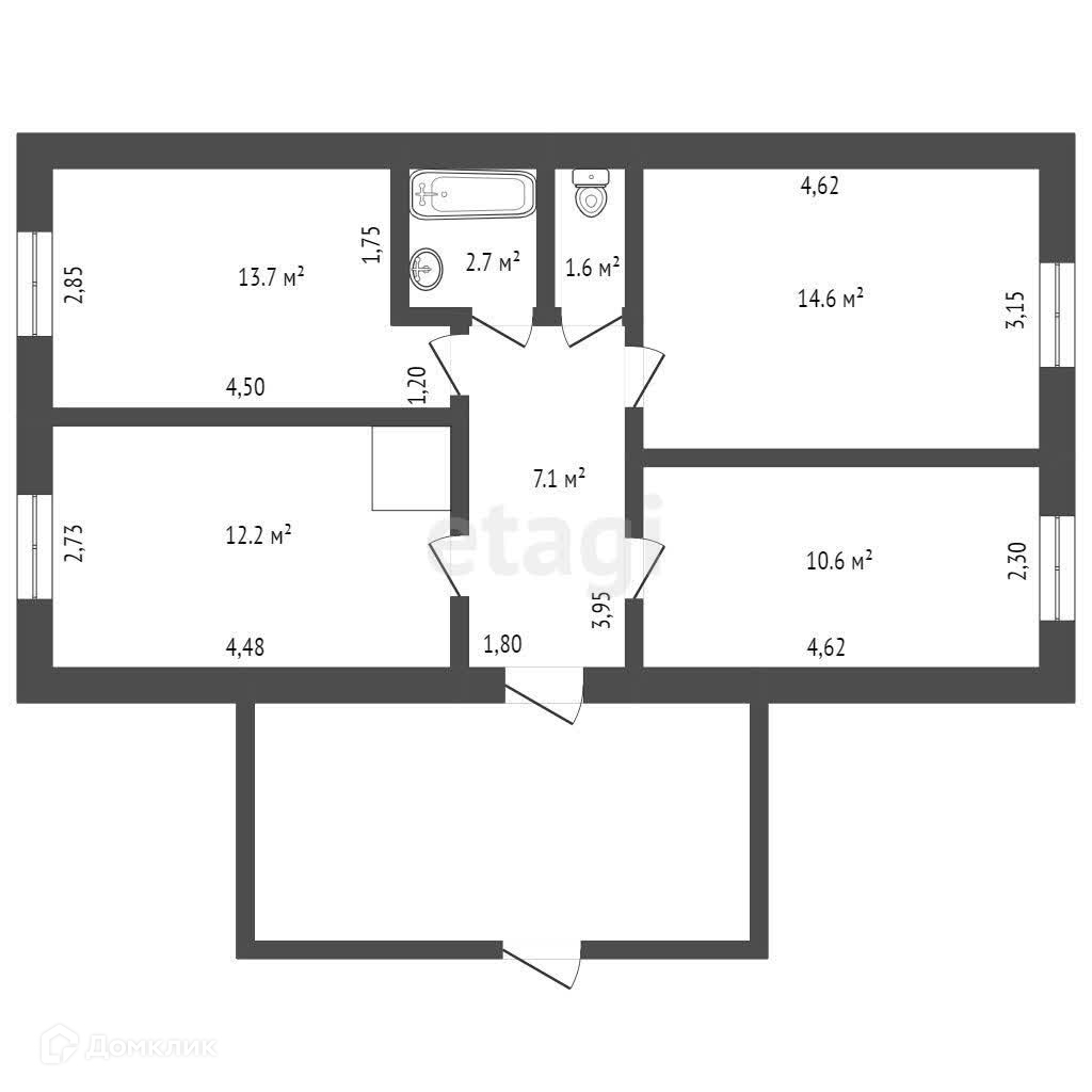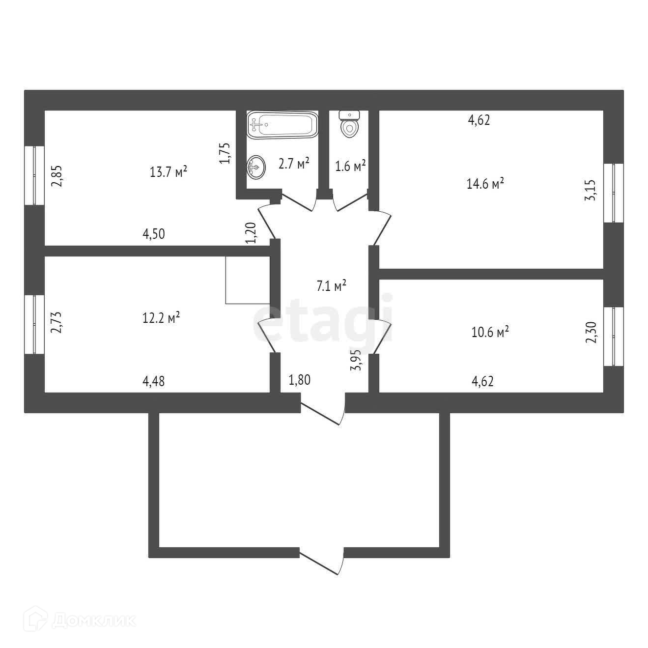Общая площадь 62.5 м2