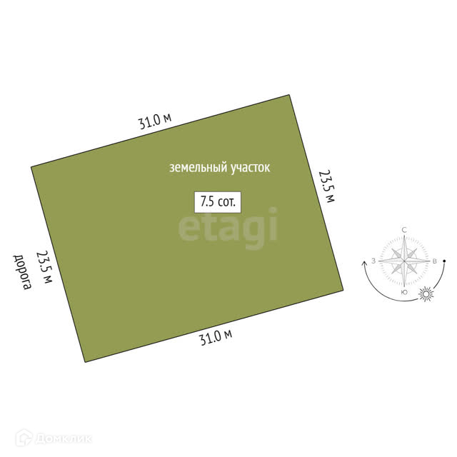 Площадь участка 7.6 сот.