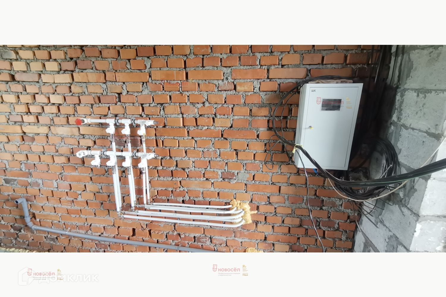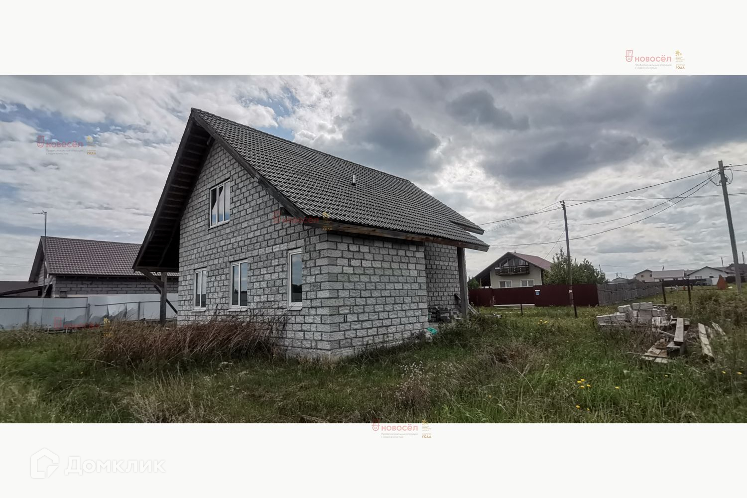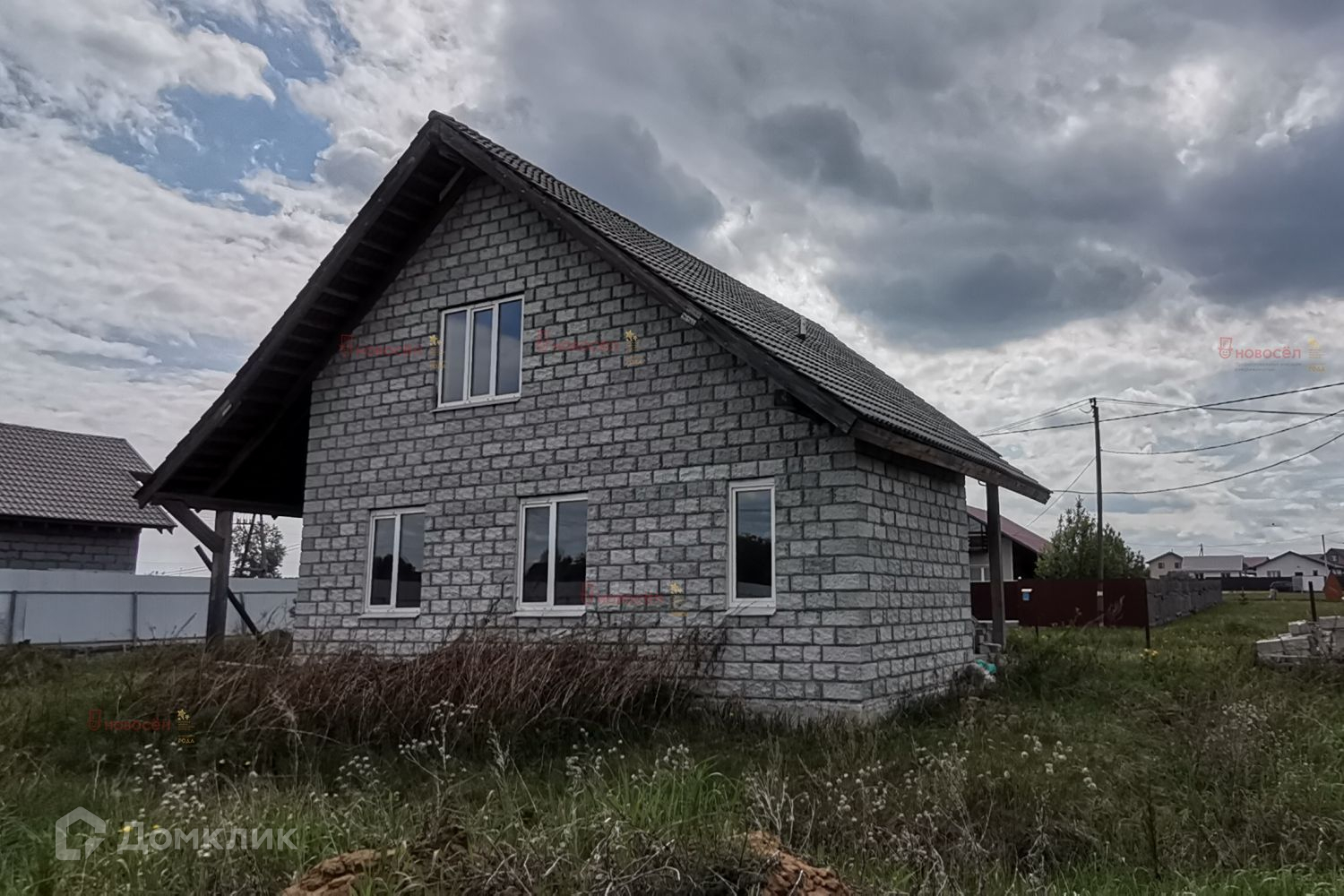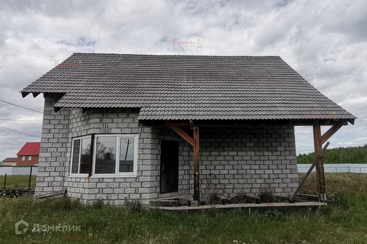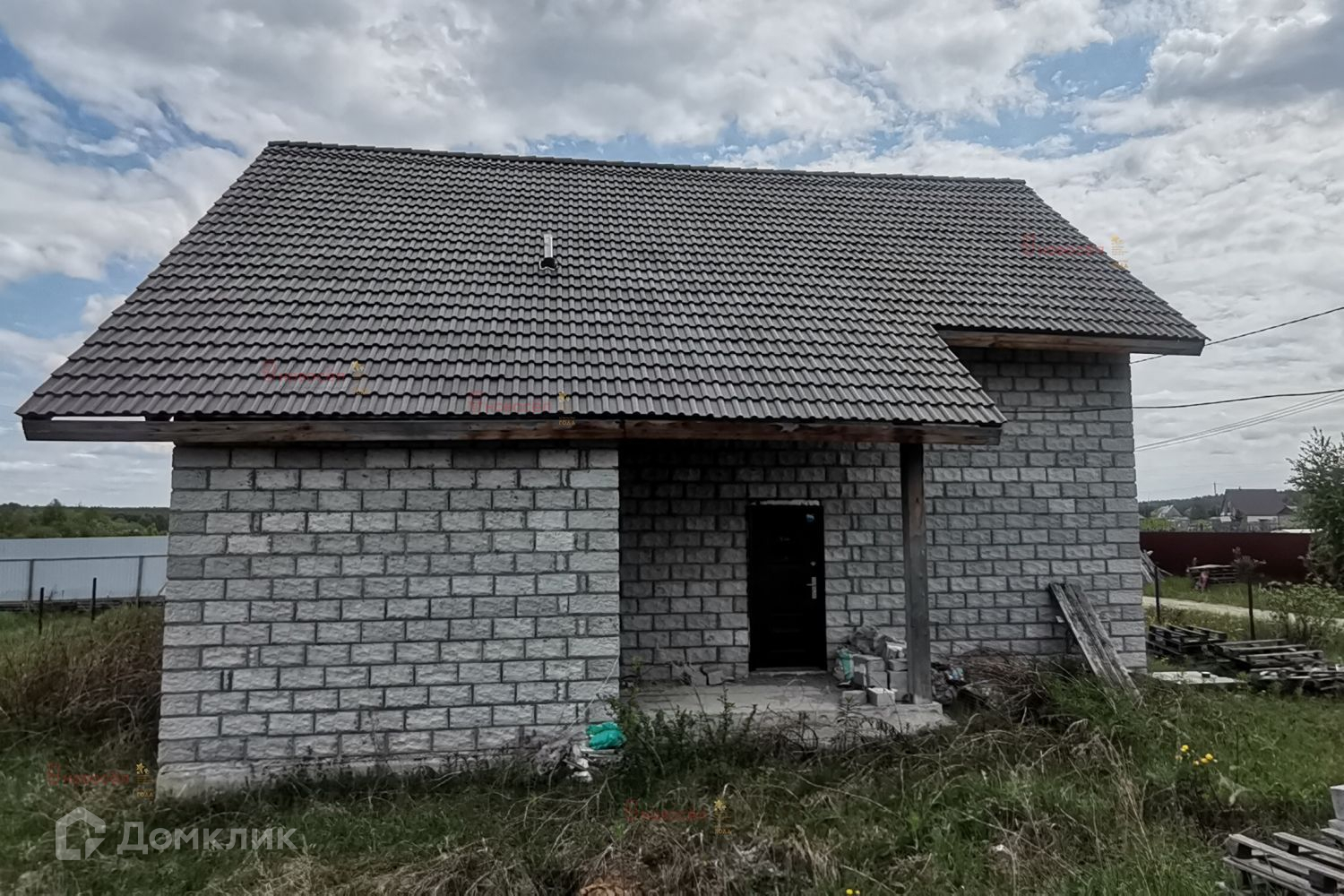 Объект № 160638. Современный коттедж «под черновую» отделку. Коттедж построен по проекту из качественных материалов: фундамент – забивные ж/б сваи (глубиной 6м), ж/б лента, ж/б плиты перекрытия пола. Стены – теплоблок (с облицовкой и утеплителем 100 мм пенополистерол), внутренние несущие стены и перегородки из кирпича. Кровля – полимерпесчаная черепица. Станция биологической очистки. Выполнена разводка ХВС, канализации. Двухкамерные стеклопакеты, железные двери в котельную и входная.