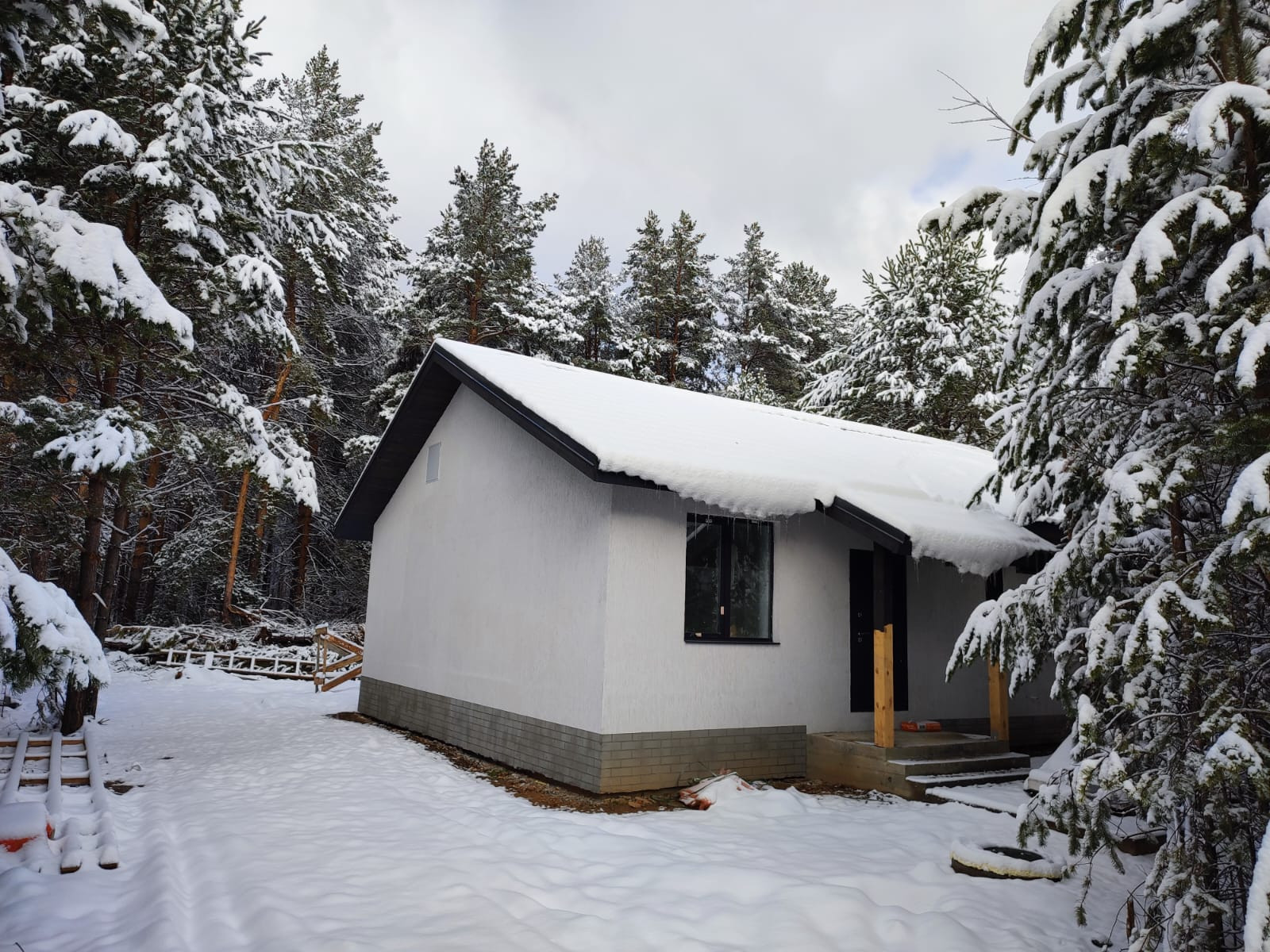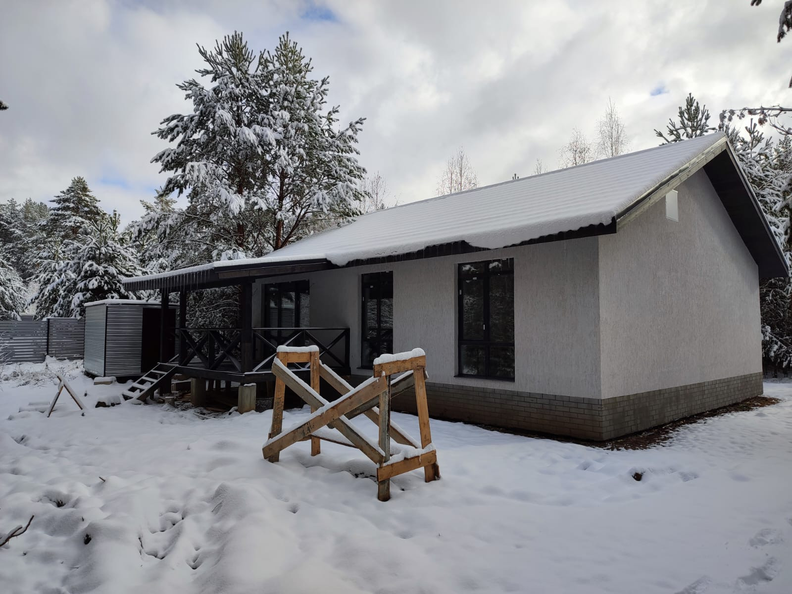 Кухня-гостиная 28 м2, три просторные комнаты, санузел, котельная, коридор с нишей под вместительный шкаф-купе. В доме сделаны панорамные окна.