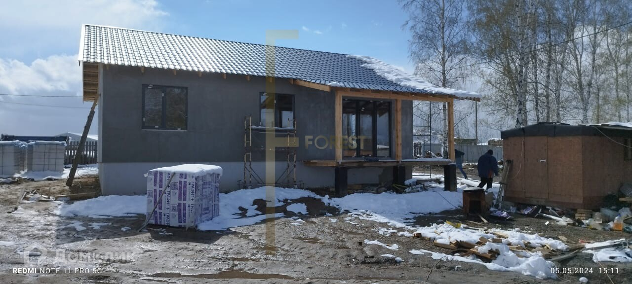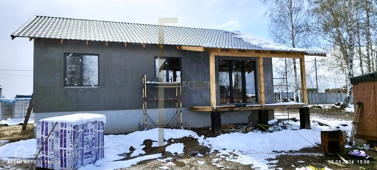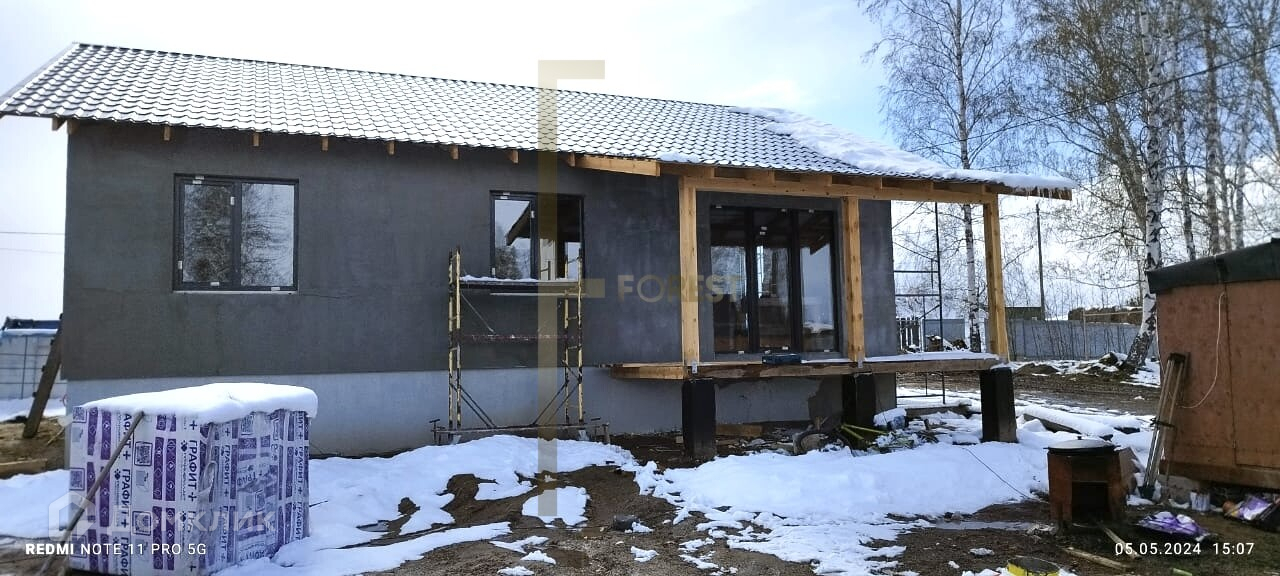 Фундамент – свайно-ростверковый с монолитной плитойСтены - газобетонные блоки 300 мм с утеплением 100 мм минватой.Крыша – мягкая черепицаФасад - декоративная штукатуркаУтепленная кровля: утеплитель крыши эко вата, толщина утепления 200 ммКанализация – выгребная яма система слив-перелив. (кольца ЖБИ, объем 8 м3)Собственная скважина глубиной 48 метров на улице.