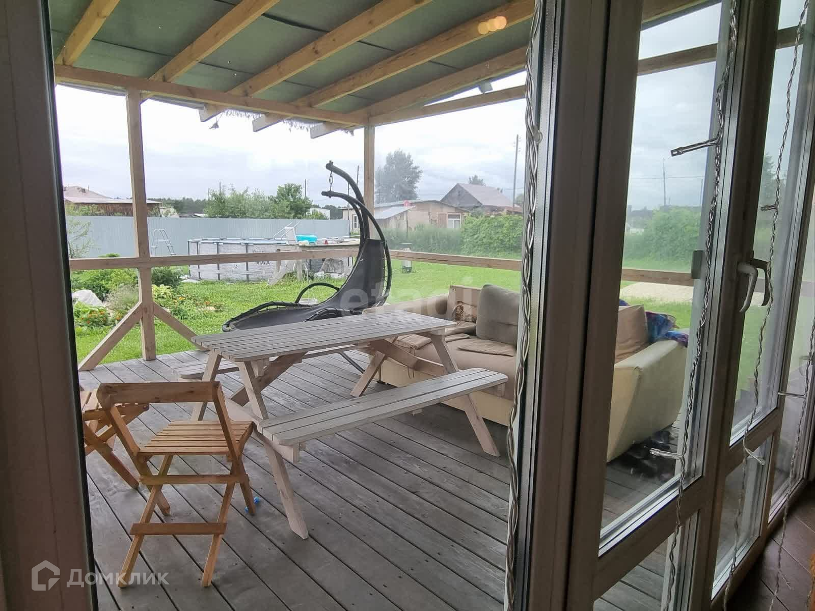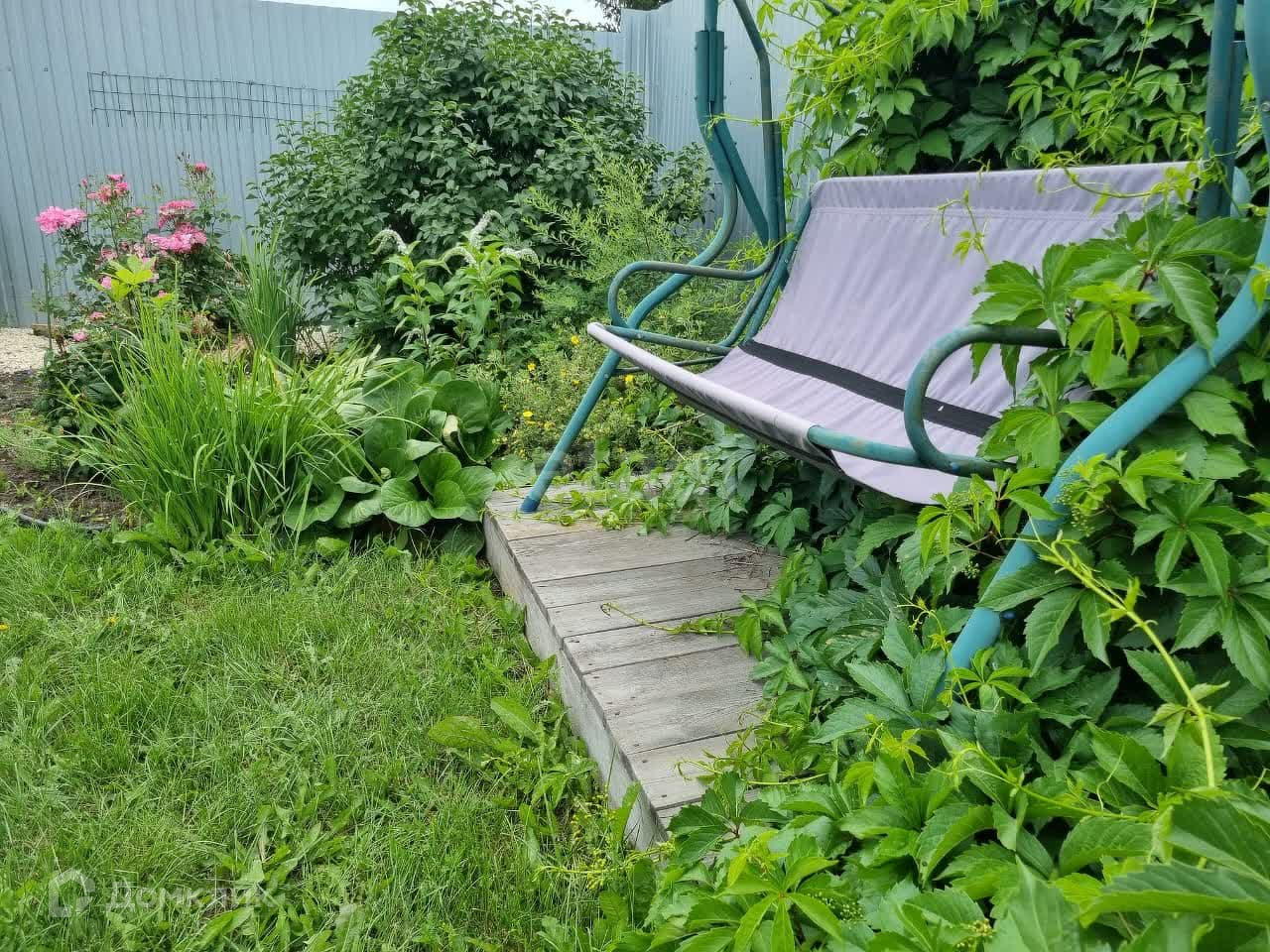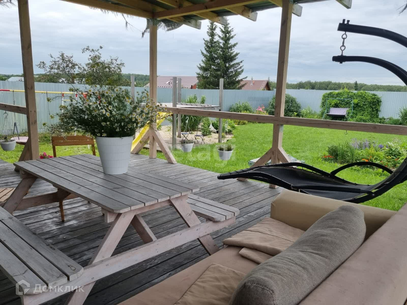 На участке каркасный бассейн 550см в диаметре, капитальный детский комплекс. Территория участка ограждена забором.