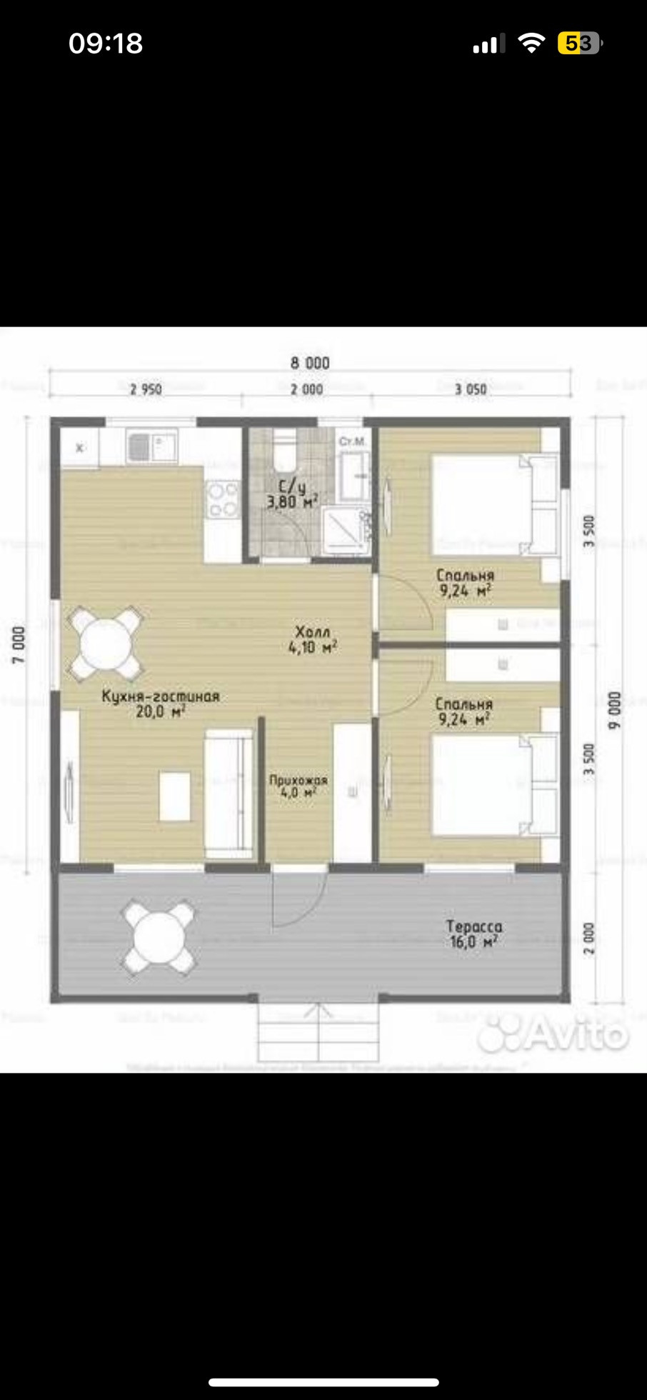 Дом площадью 72 м2 с 2мя спальнями, 1 с/у