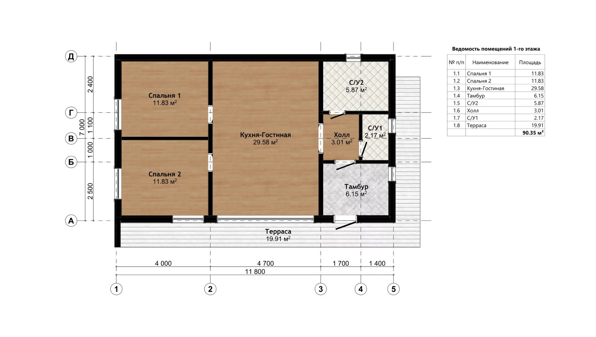 - Открытая терраса - 19,91 кв.м