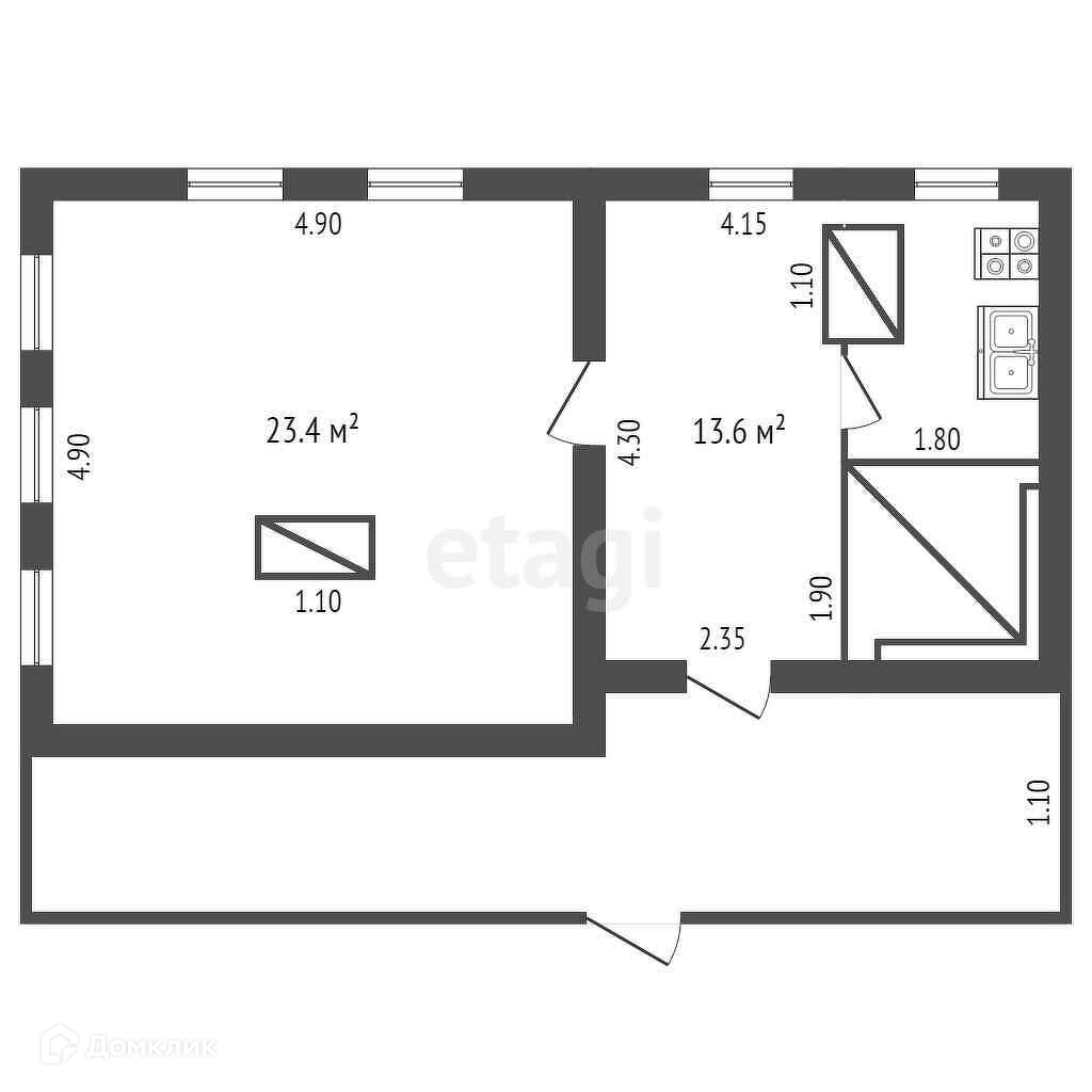 Общая площадь 57 м2