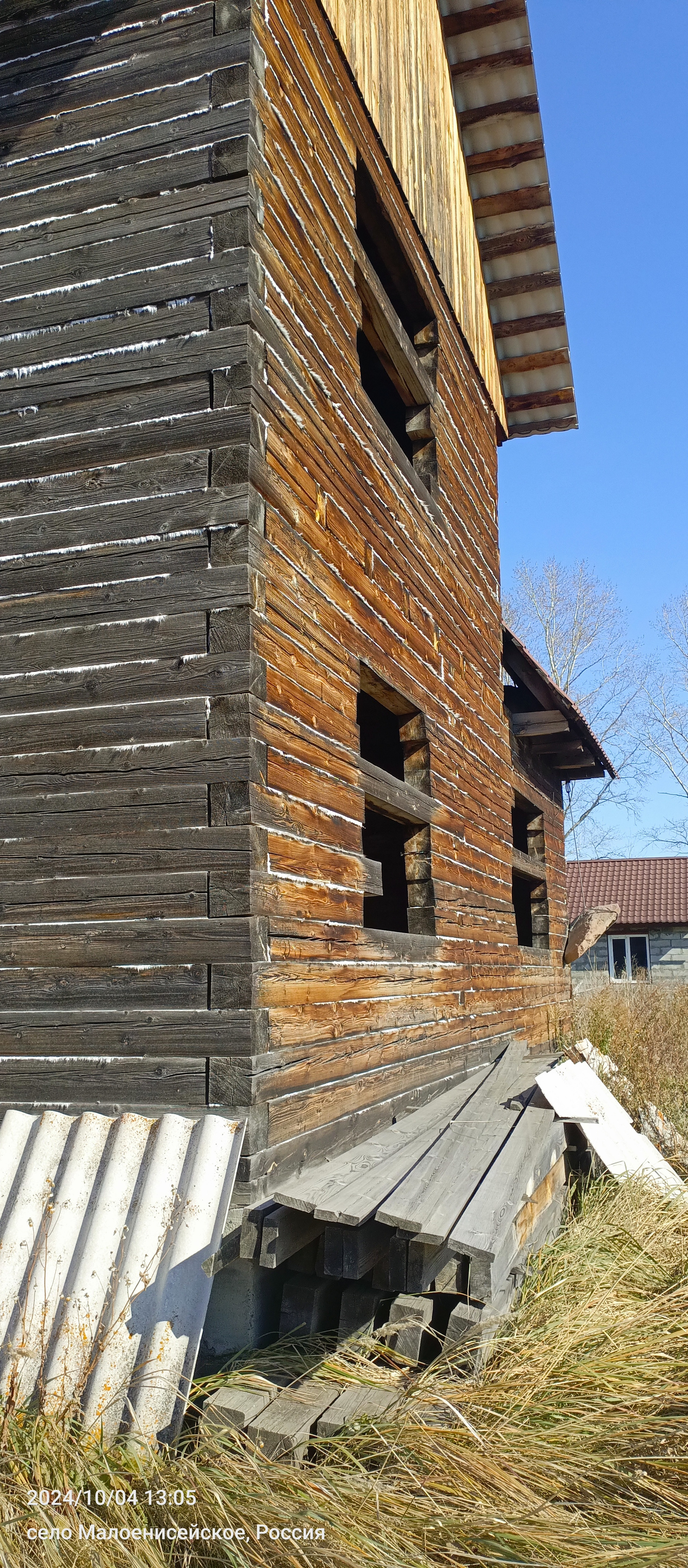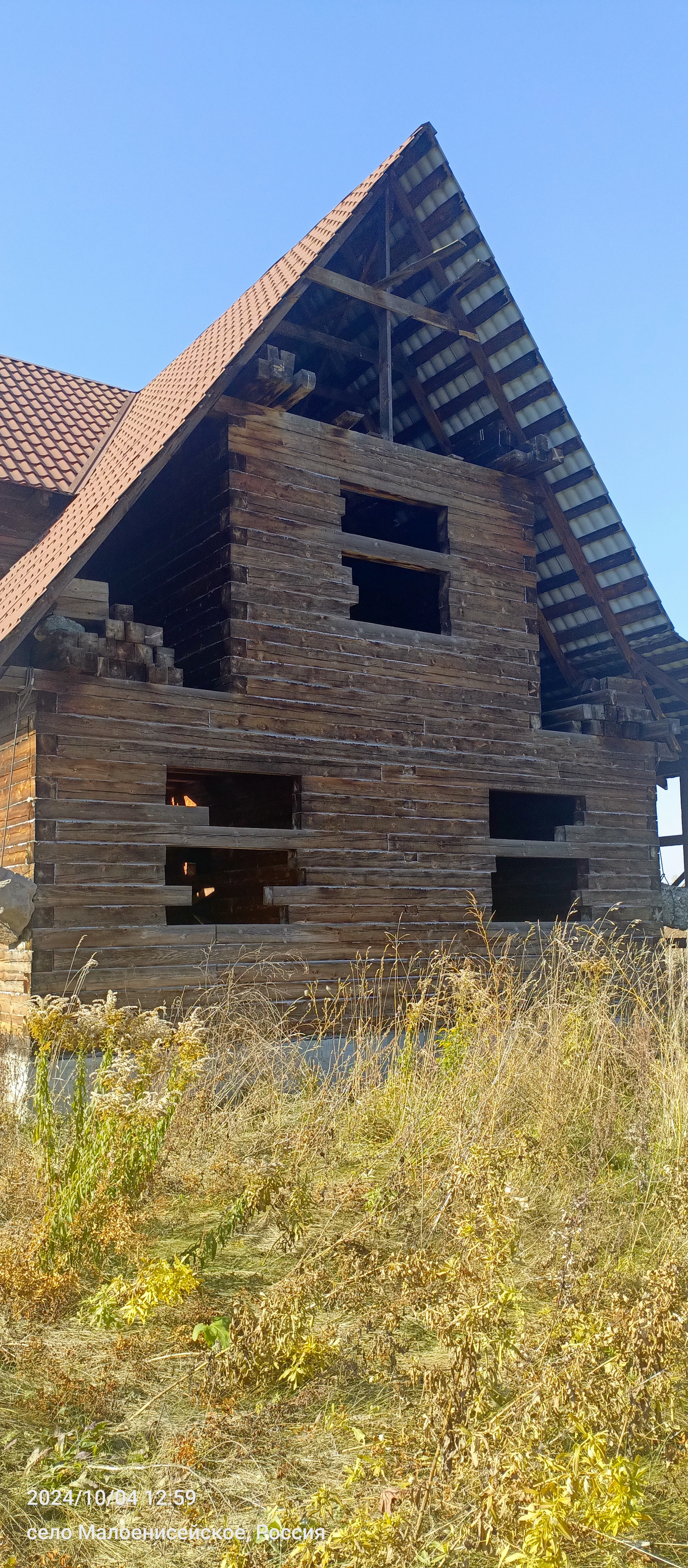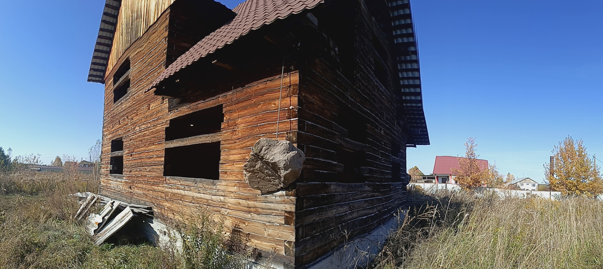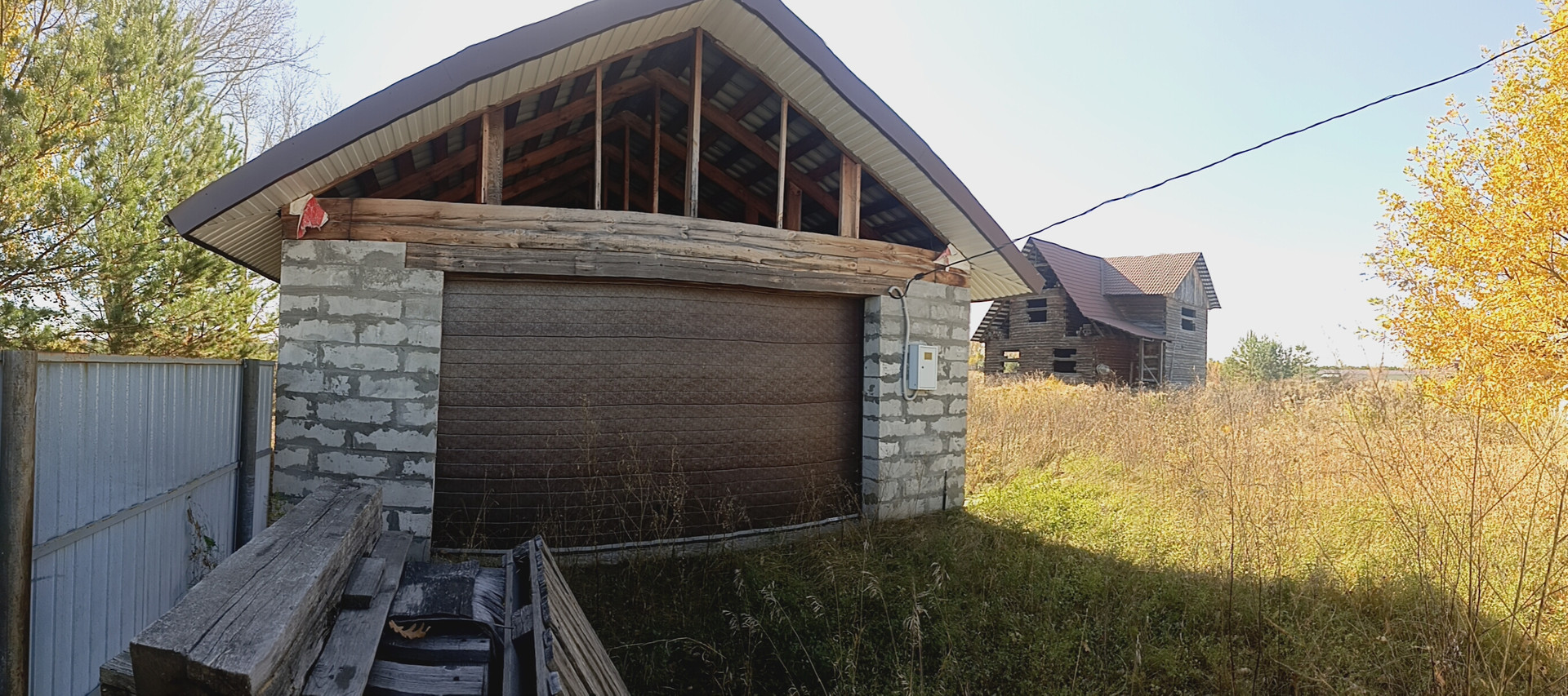 - недостроенный дом размером 10 х 12 м. из бруса пихты (18х18) на ленточном бетонном фундаменте, крыша из металлочерепицы.