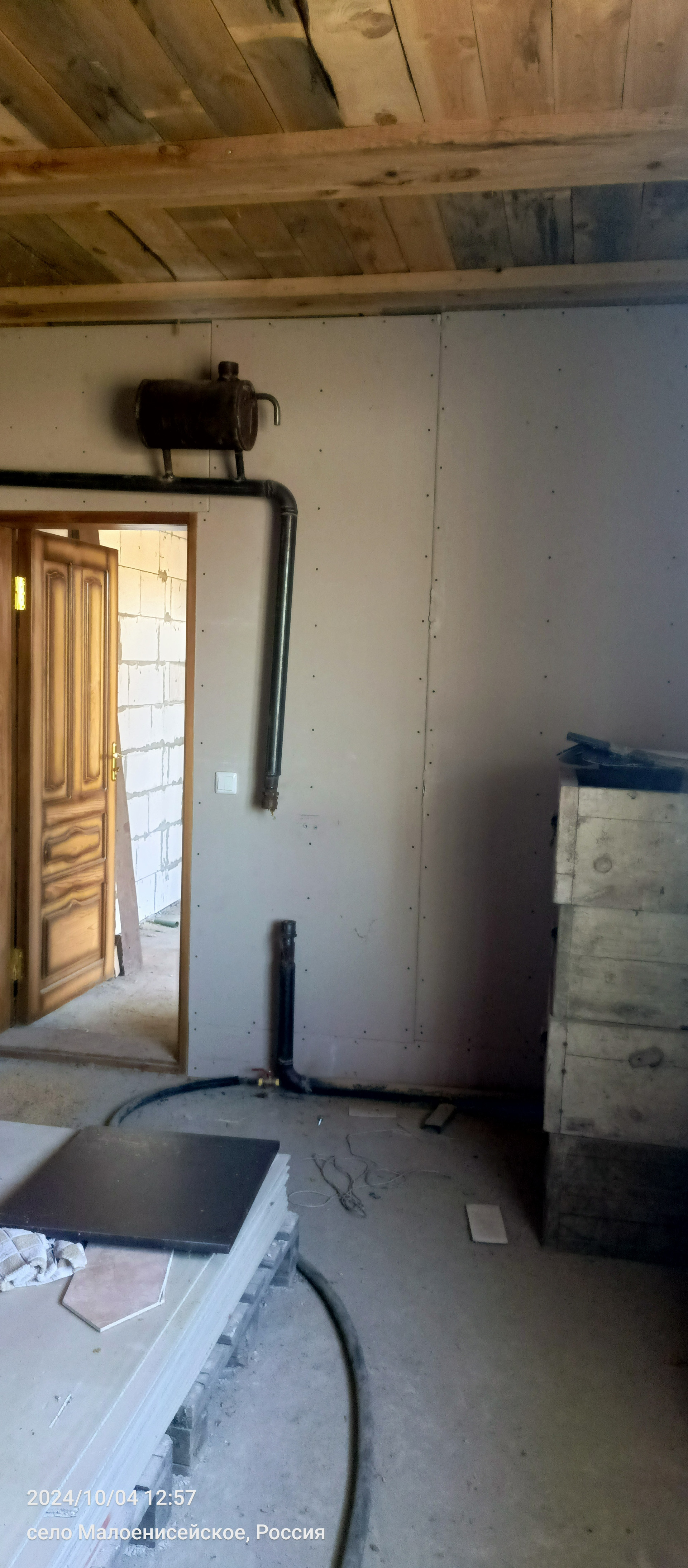- хозпостройка (6 х 20 м.) из сибита, водяное отопление, на бетонном фундаменте, крыша отделана металлочерепицей, состоящая из гаража (6х6 м.) с подъемными воротами и отдельным входом, а также из комнаты (6х8 м.), отделанной плиткой помещением для ванной комнаты и помещением для бани, с отдельным общим входом.